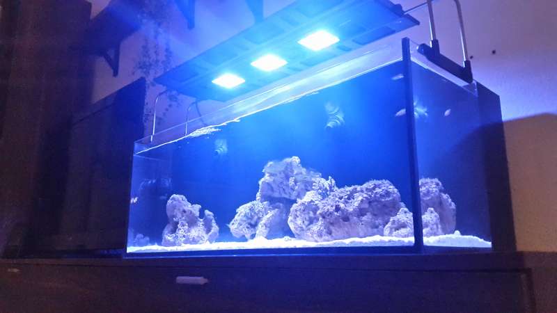 Men jeg synes det fungerer godt. Der er nok plads til mig, kan være kreativ nok i placering af sten/koral. Jeg har senest købt en custom caddy hjem til filter, så jeg har lidt flere muligheder fremadrettet.
