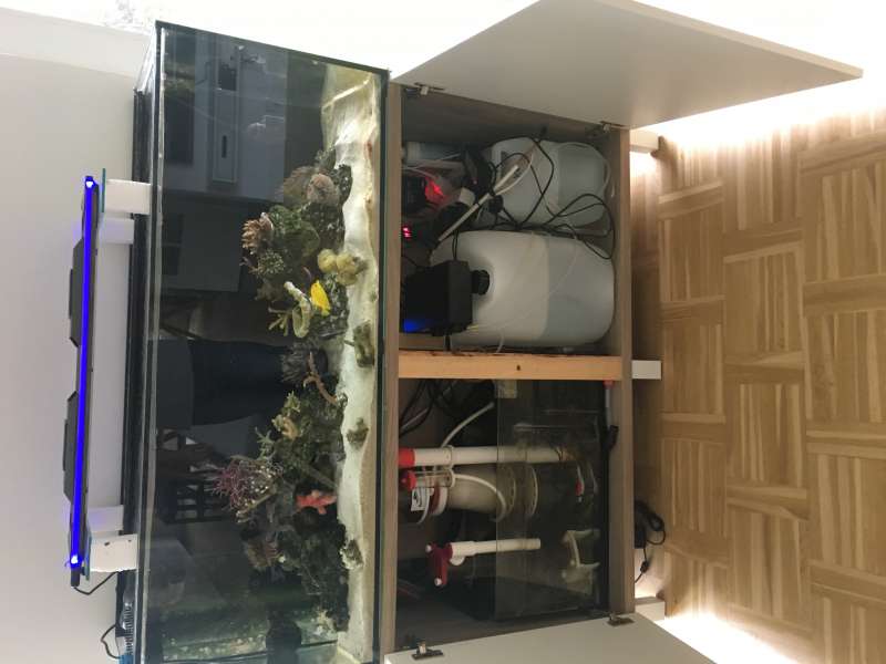 Jeg har brug for noget input. Jeg er så træt af ikke at have noget plads i mit skab samt sump at jeg overvejer at lave et nyt bord til akvariet. Det nuværende bord er et møbel fra IKEA (Ideen stjålet fra brugeren toni her på siden), hvor jeg har forstærket bagvæggen med 22 mm mdf plade samt forstærket midten med en lille lægte. Men med sump + dunk til osmosesvand + 3 dunke til balling samt doseringsmaskine er der ikke mere plads. Sumpen er også stærk begrænset så når jeg skal tømme filter sokken skal jeg flytte på skummer og reaktor, det er bare irriterende!