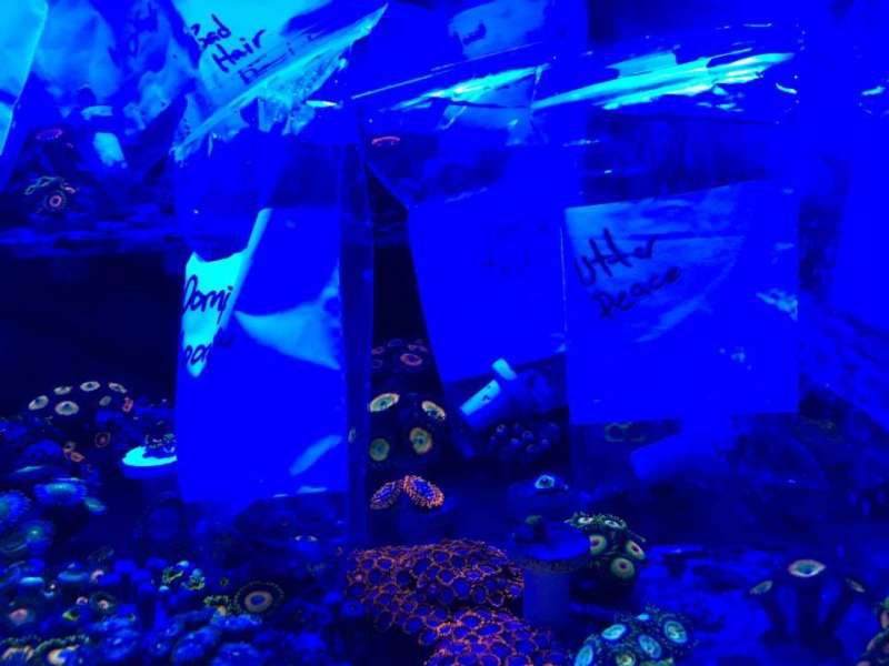 Nogle zoa begyndte allerede at åbne sig, da jeg åbnede låget i kasse. Vel hjemme blev lyset slukket, kun lige med lidt Royal blue, så jeg kunne se hvad jeg lavde.