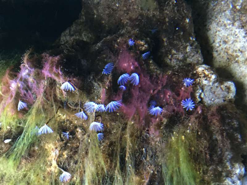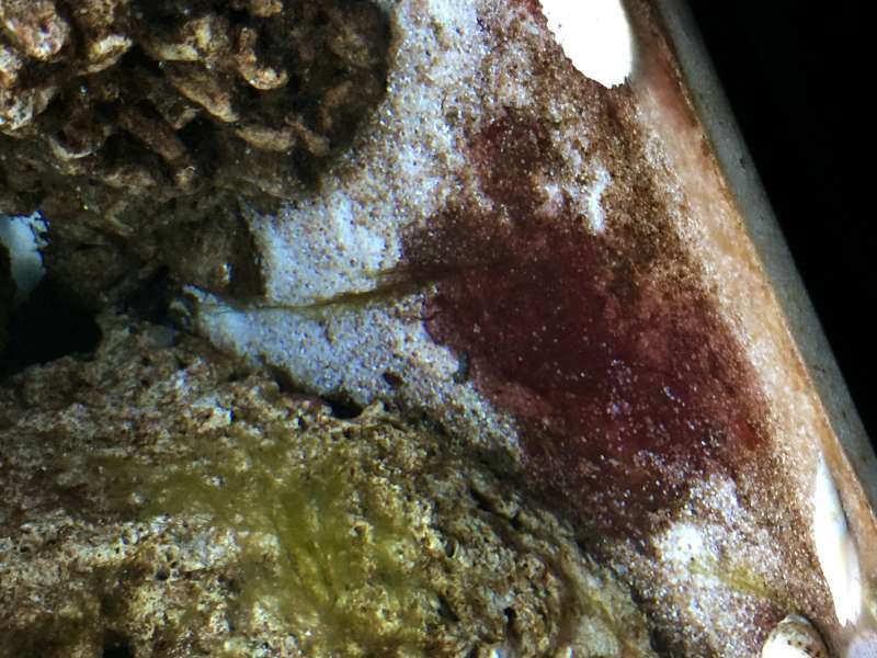 Har et lille nystartet (45 dage) saltakvarie, nu med CUC og en enkelt Hugo. Der er den seneste tid dukket nogle rød-lilka plamager op forskellige steder på LS, sandbund. Se billeder - nogen ideer om hvad det er?