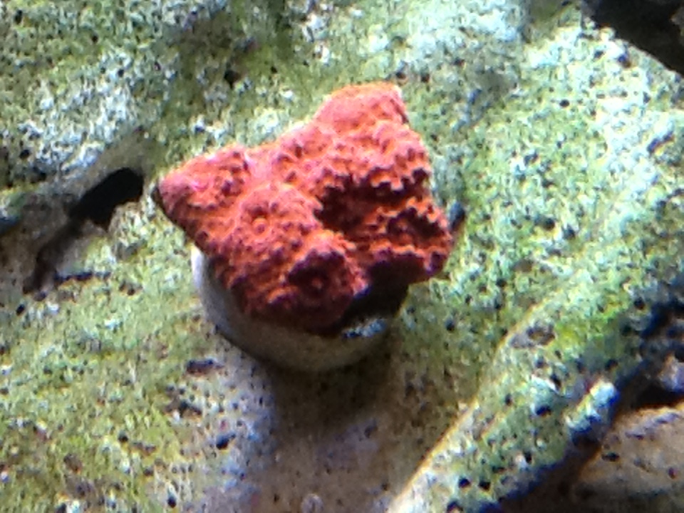 Jeg ville sætte den enten i f.eks en fordybning i sten, så kanten af korallen får kontakt, eller bruge reef-cement til at komme op under den.