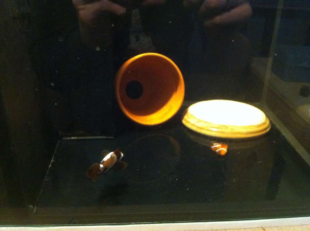 Jeg fandt i dag en af mine klovne død. I går stod den oppe i hjørnet som om den var bange for noget og det gentog sig så i morges. Vi har været væk det meste af dagen og er netop kommet hjem. Jeg fandt så den døde klovn, som har tydelige tegn efter hustruvold. Min lightning maroon hun har simpelthen slået hannen ihjel. Dog havde han en underlig bule på maven, som når de har spist meget mad. Jeg skar hannen op og så efter orm, men fandt ikke noget. Der kom dog hvid væske ud. Sæd måske? Men ingen vridende orme.