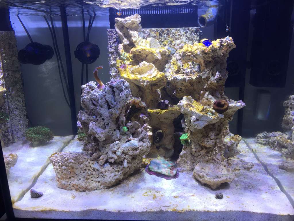 lige nu står den på bunden og der er middel vandstrøm af lys har jeg en maxspect 120 watt, som køre kl 10 til 22 og den kommer op på 75% hvid og 85% blå som max i 4 timer. i tidsrummet kl 13-17