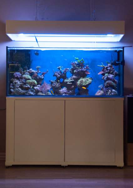 Sååå nu overvejer jeg om jeg skal lave mine maxspect lamper lidt om med 2 eller 4 T5 rør, udelukkende for at få extra flotte farver frem på korallerne når baljen en dag er klar til dem.