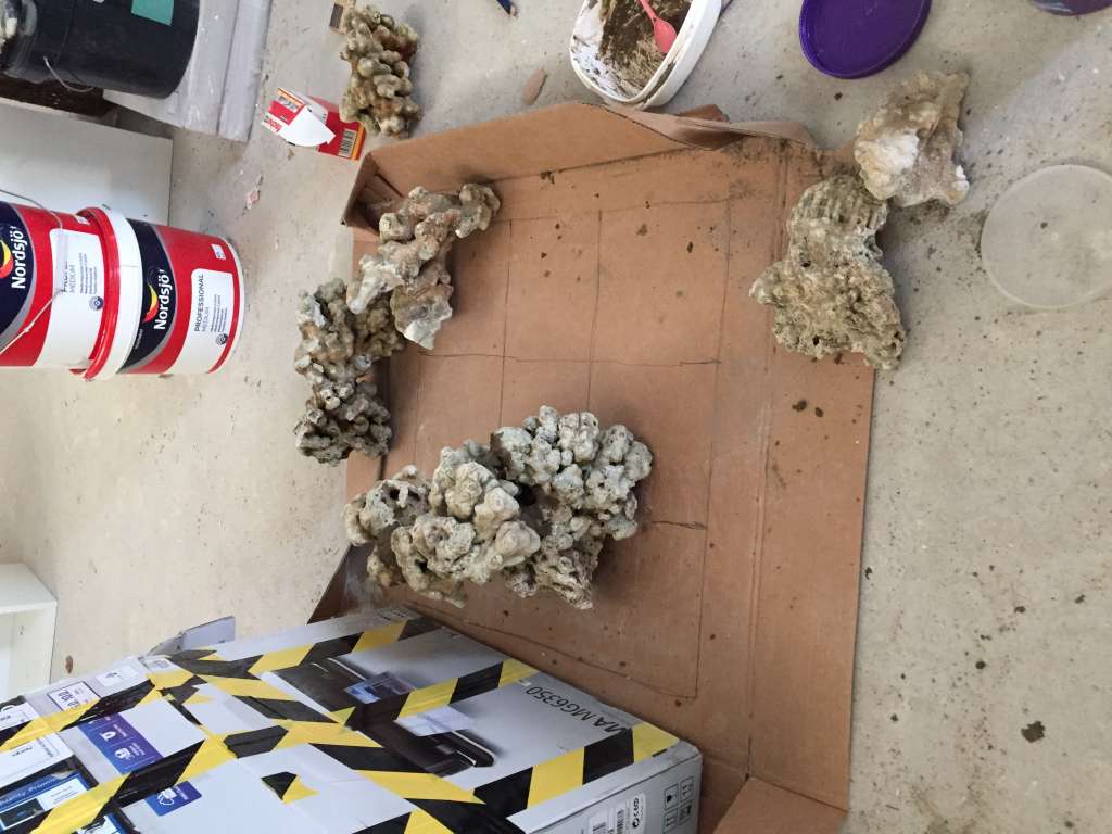Har netop hentet lidt sten, som jeg skal pode de døde med. Mangler bare stadig at rense de døde LS for skidt, men det kommer. Så nu er der blandet saltvand, så de levende sten kan komme i og hygge sig ;)