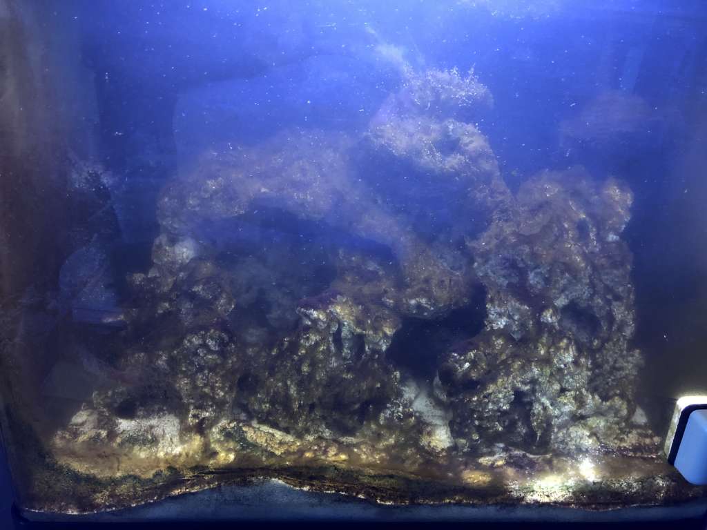 Mit akvarie blev startet op på sten som havde ligget i brintoverilte og søjlerne i klorin. Så de var helt døde. Fik gang i dem med et par små stykker levende sten jeg havde gemt. Og trods det kom der både rørsnegle og ikke mindst de monster store orme ind. Og det er kommet ind i en størrelse hvor de har været usynlige.