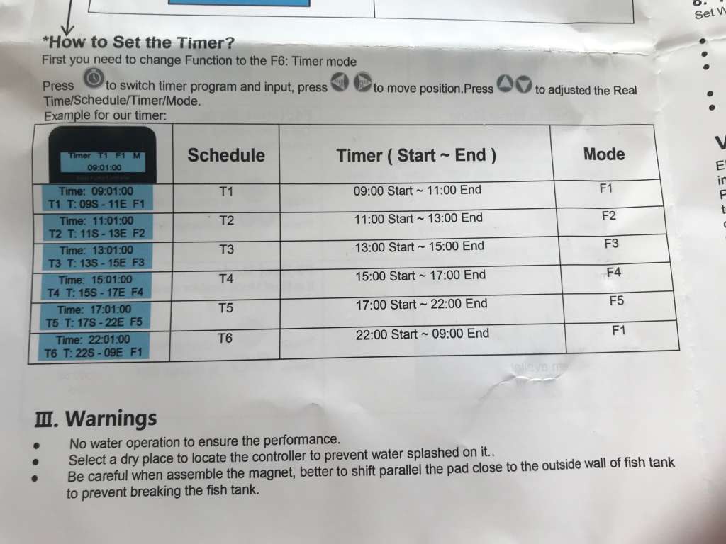 Mode F6 er timer her aktiverer man timer funktionen , søg gør det muligt at skifte mellem de forskellige modes gennem dagen, hvor du har 6 instillinger at programere. så du kan fra 12-13 kører pulse mode og senere nature mode vidre ovre i reefmode, eller du kan vælge at skifte fra reefmode til nature mode om natten. Mode f7 Reverse, er deres interessante mode du kan sætte den i den suger nemlig i stedet for at blæse hvilket fungere lidt som samme formål nutrition export mode vi kender fra ecotech nemlig at få hvivlet snaks og snavs op fra bunden så det kan blive skummet ud og filteret fra. har lavet lidt lyd test på den hvor jeg har holdt den op mod min maxspect gyre 250 på hhv. 100 %(18000L/T) og skruet den ned til 60 % da det ca er omkring de 10000L i timen som Rn-1 også giver. i skal ike bide mærke i avage og max altså det der stå i toppen da jeg kan have hostet rykket på mig som jo har givet udfald.