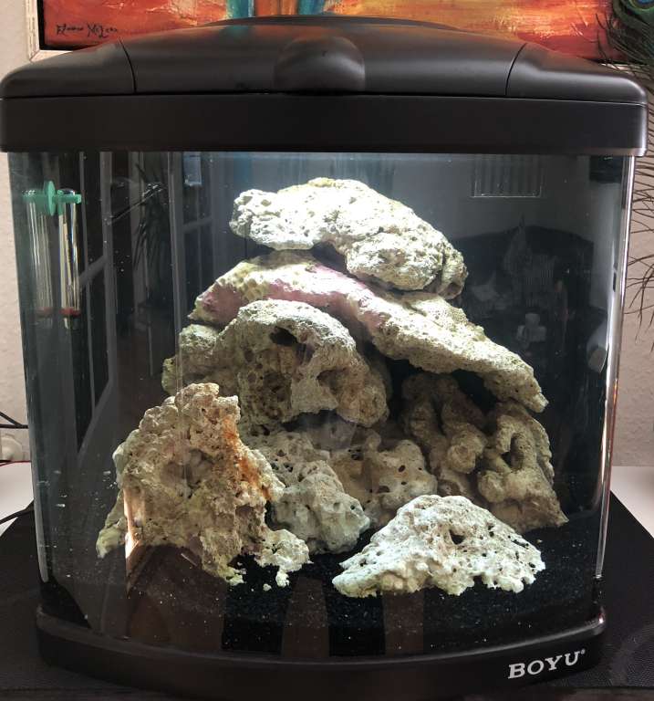 Jeg har nu taget en ny udfordring op, Nano Saltvandsakvarier, så jeg har købt et Boyu Zumbo TL450 på 58 liter og planen er, at det skal kører med minimum teknik og jeg vil forsøge at holde det med minimum maintance, der skal være et par klovnfisk, Clean up Crew og en eller to rejer, anemone og flotte koraller.