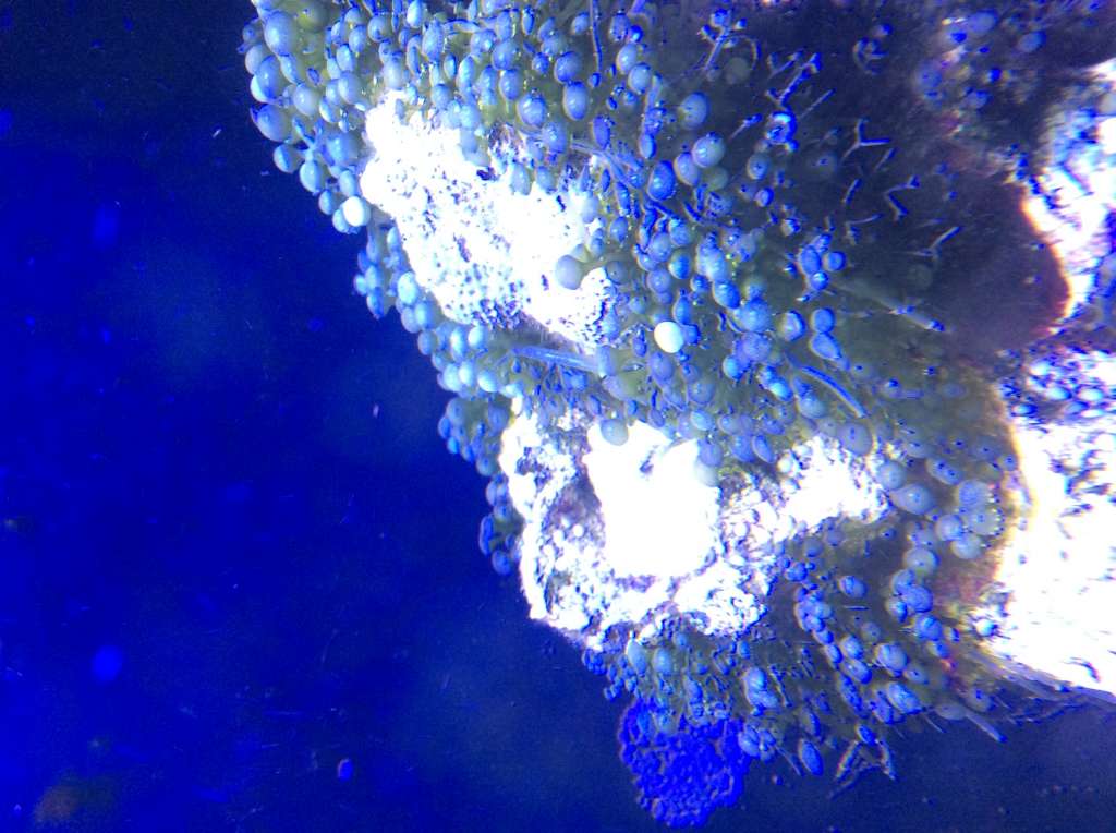 caulerpa racemosa, vokser hurtig og kan være en plage, havde den også i mit første akvarie, jeg plukkede og plukkede og kom derved a med den, men ellers en lille kirurg eller kaninfisk så skulle det gerne forsvinde helt, så DecOcean havde en lille veliferum kirurg på str med en 5'er gående i fredags.