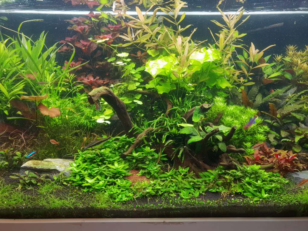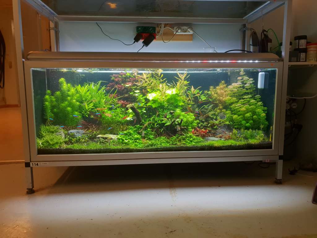 Dette planteakvarie har kørt ca. 4 mrd. Det er 325l køre med co2 Har dossering på med gødning og ca. 300w lys på.