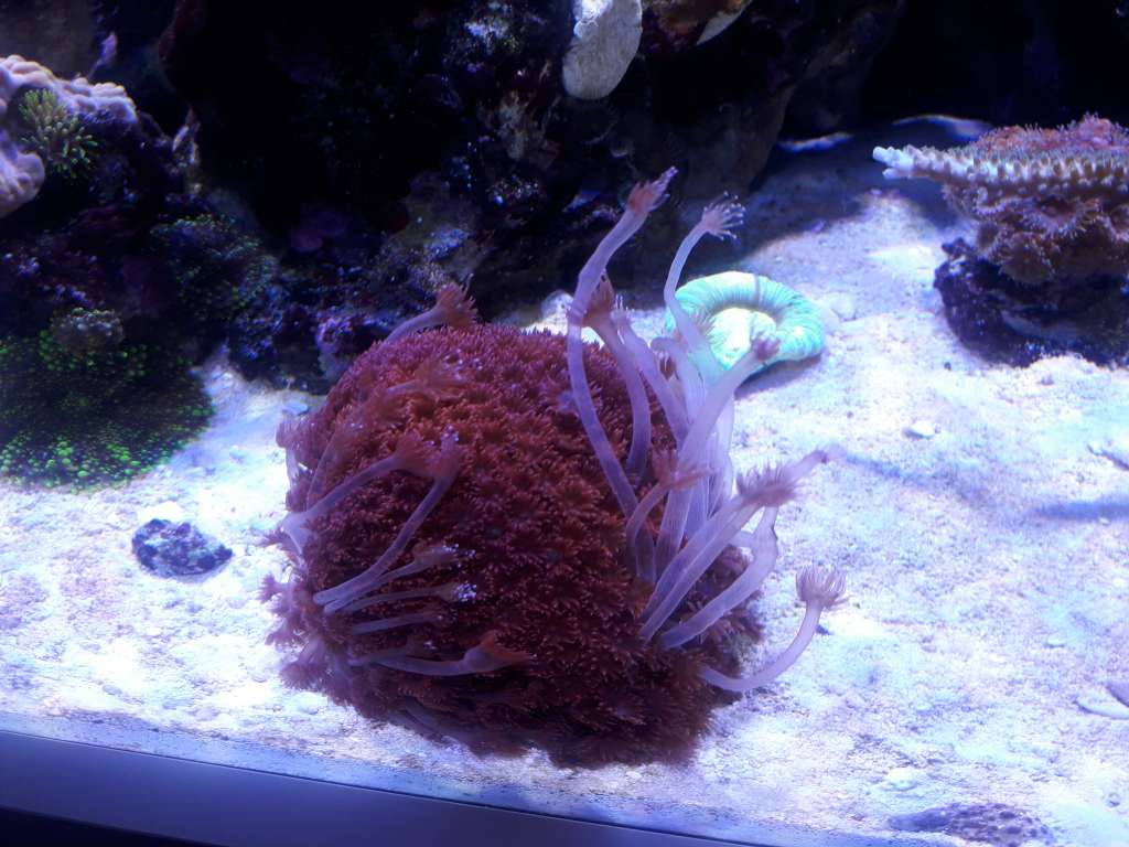 På billedet har jeg sat en skriggrøn Trachyphyllia lige bag ved den og i løbet at 5 minutter reagerede den