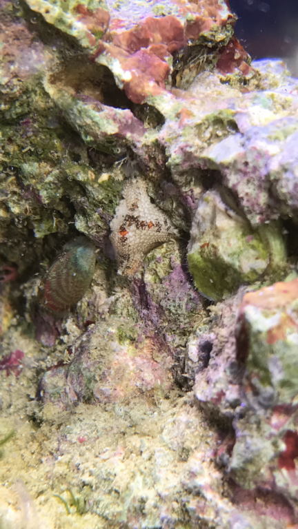 her er et billede fra sidste sommer (24.august) hvor man kan se begge slags - den anden sider til højre for søstjernen og kan være lidt svær at se (der er også en i højre hjørne) dem har jeg kun 4-5 af (havde 1 mere men den er forsvundet bag grønne alger så tror ikke den lever mere)