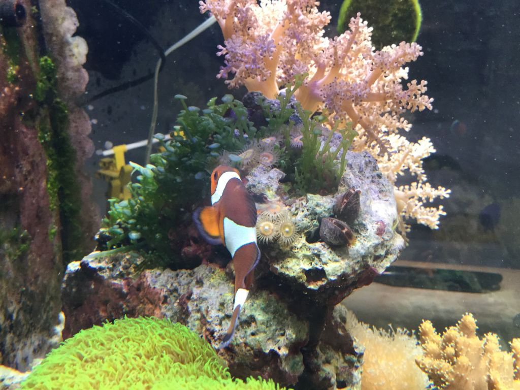 akvariet er kun 60L og har kun tilsat små mængder havvand samt en lille tot tang.