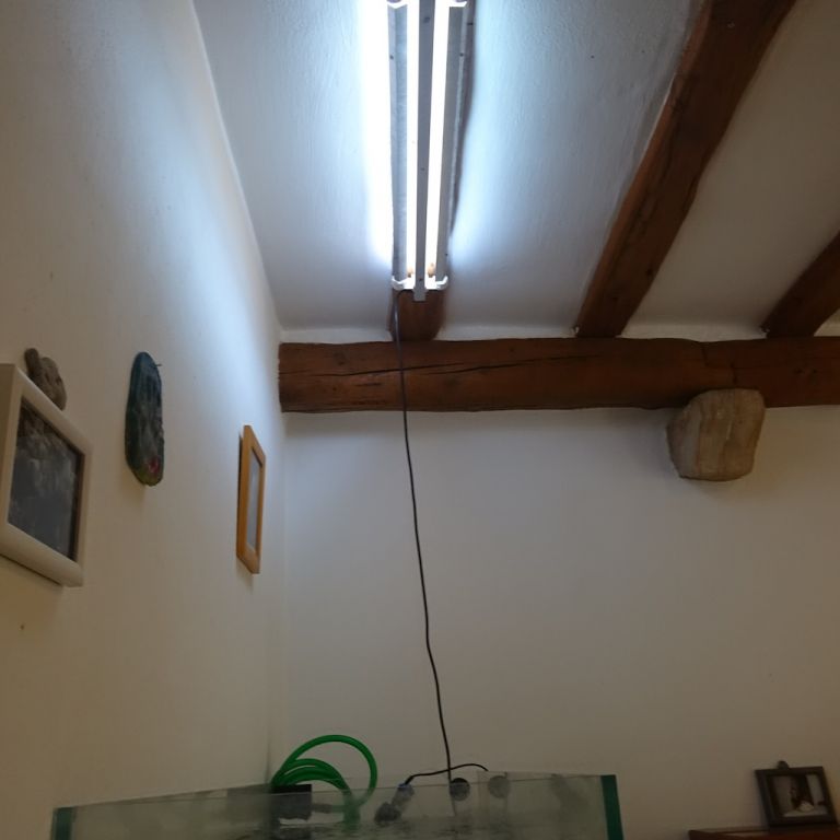 kom mere sand i og rykket akvariet nærmere væggen det er har så næsten elemineret de striber der kom på bagvæggen ifra belysningen,akvariet står i et rolig rum,en saunastue uden tv :be: