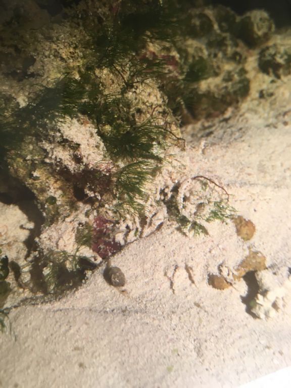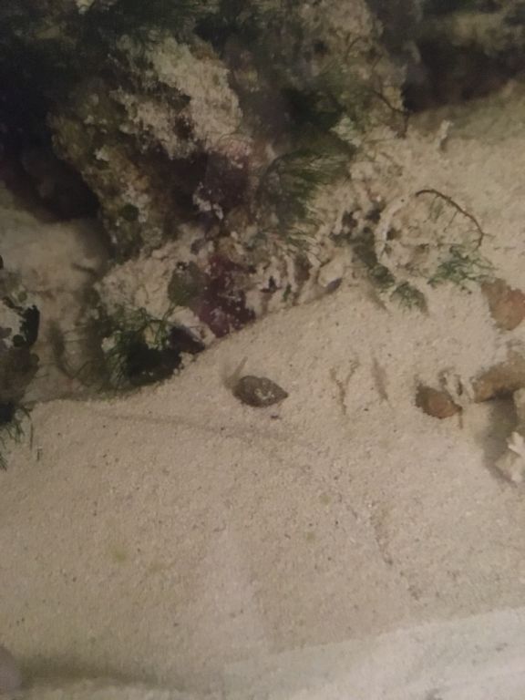 men i nat da jeg sad & arb. ( mit akv. står i den ene ende af mit skrivebord ) kunne jeg se noget småt bevæge sig både på glasset & på bunden ( billederne er ikke så gode da det er med nat belysning ) det var 2 små snegle så nu er jeg sikker på at når jeg ser de små snorkler stikke op af sandet er det sand snegle.jeg ved ikke hvor mange jeg har men har set 4 små snorkler på en gang.de holder mit sand hvidt - men min sand spiser er død efter over 3 år så jeg må ud & købe en ny