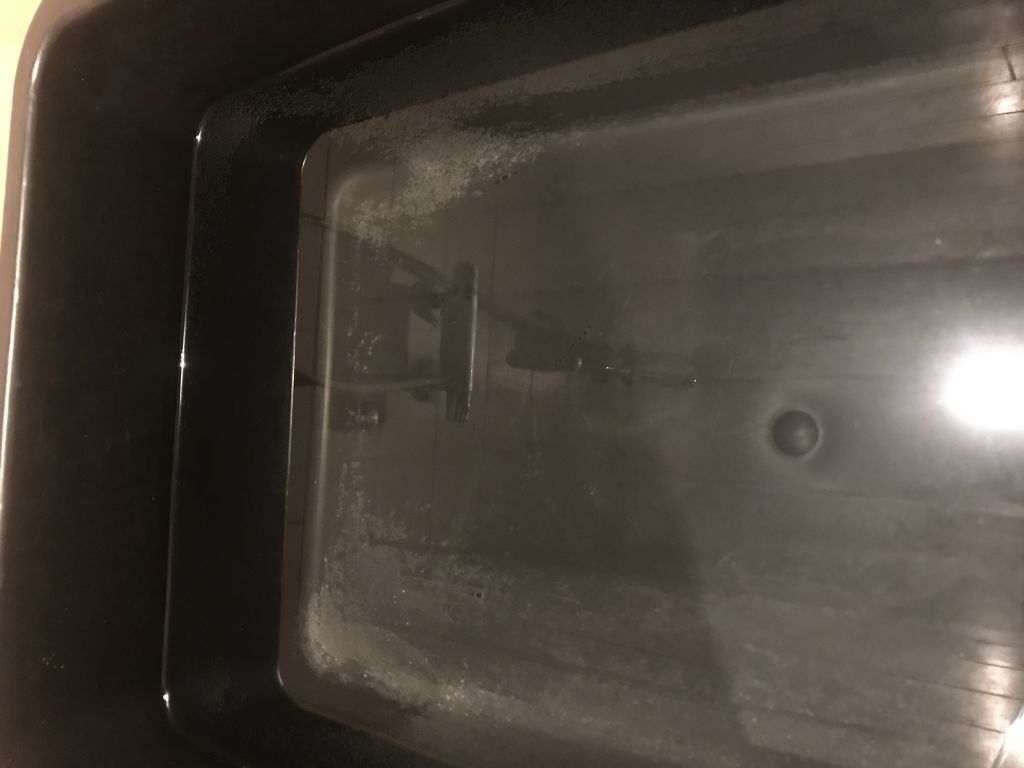 I går fyldte jeg en murerbalje med vand, og ca hver 2 time målte TDS og kiggede nøje på overfladen. Konklusionen var at TDS'n ikke steg men at der dannede sig små olie lignende pletter på overfladen.