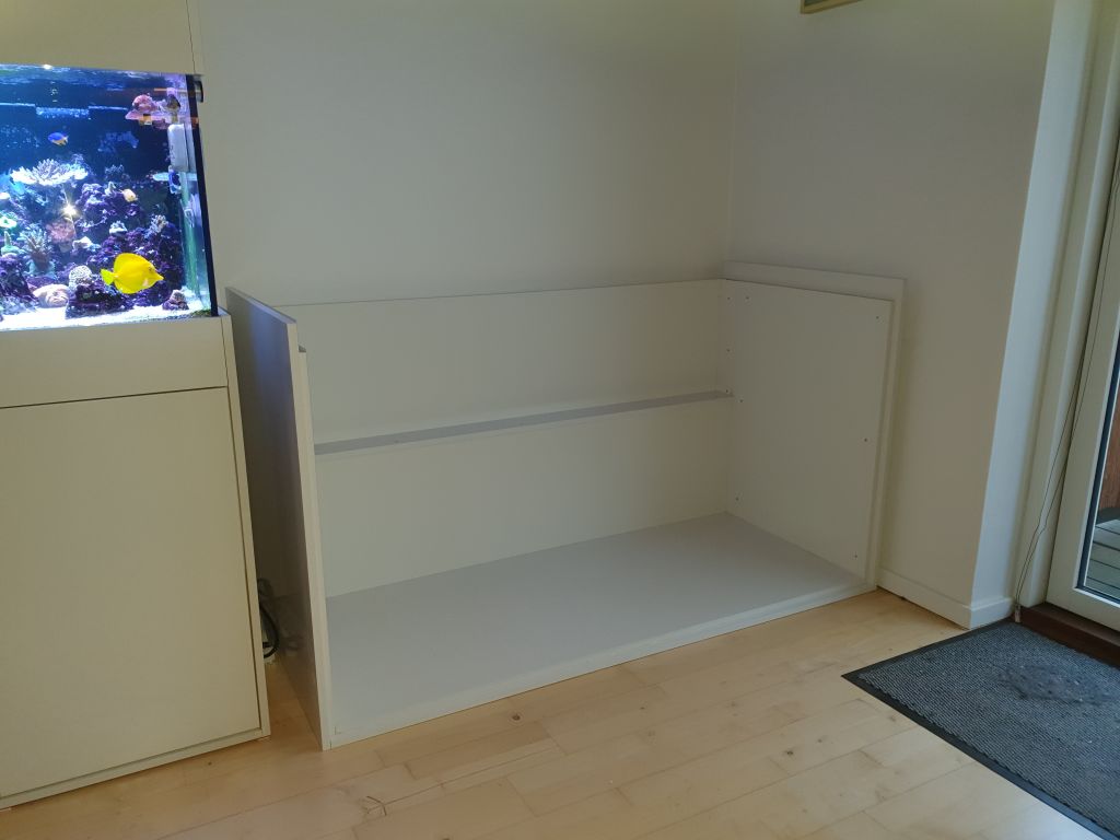 Jeg bygger bordet som det til mit nuværende akvarie: skabssider, panelplader,sidepaneler og køkkenlåger (Alt hvidmalet). Sider og bund i 2 lag plade med masser af lim- det bliver meget solidt- jeg er tømrer/Snedker og køkkenmontør, så når jeg har samlet materialerne, bygger jeg det på en dag...