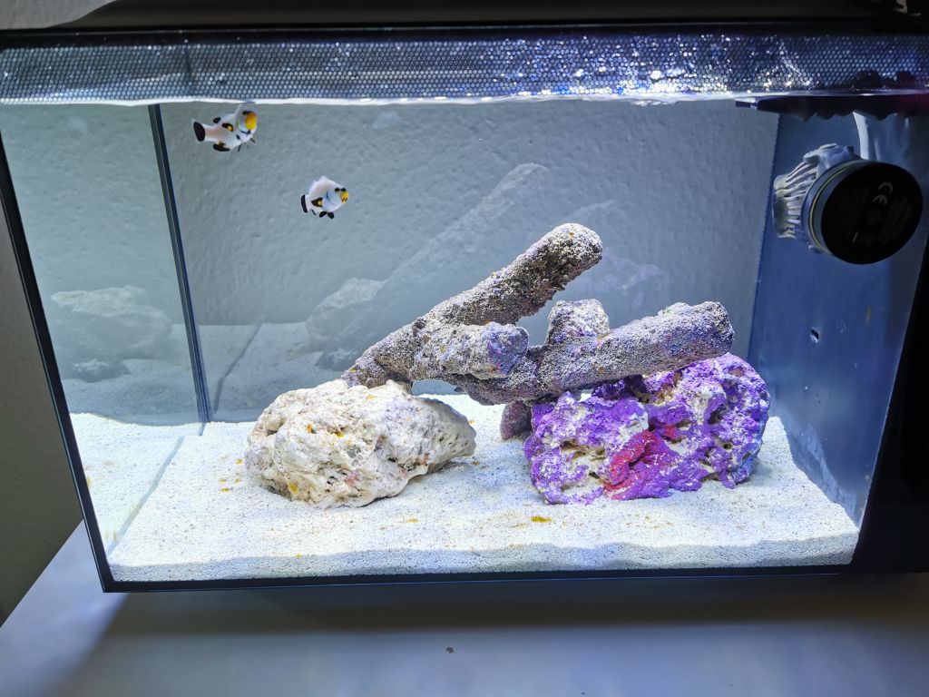 Det står nu og har været igang i lidt over 3 måneder der er kommet lidt liv derinde. "hvilket jeg er hel vild med" Jeg har 1 turbo snegl og en hermit krabbe der overlevede hele turen "indtil videre".