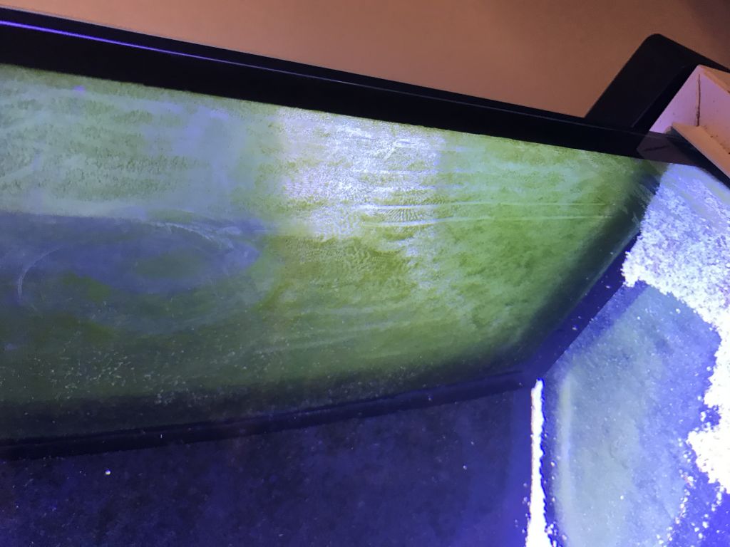 prøv at teste din CA måske du har en høj calium og der ved lidt uklar vand har jeg selv oplevet og ja mon ikke grøn algen trives godt ved høj calium uden at vide det og garantert den trælse alge der sidder super godt fast på ruden ... eller er det nem at fjerne ?