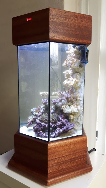 På det seneste er der flere her på Saltvandsforum, der har eksperimenteret med helt små rev - de såkaldte pico-rev eller "reef-jars". Sidste betegnelse dækker over, at små glasvaser og glaskrukker på helt ned til 5-6 liter kan danne rammerne om helt små rev-akvarier. Andre små akvarier kan dog også gøre det og da flere har spurgt, om jeg ikke vil fortælle lidt mere om mine egne erfaringer med de helt små baljer kommer her beretningen om mit lille skrivebordsakvarium på ca 20l, som blev startet i foråret 2018.