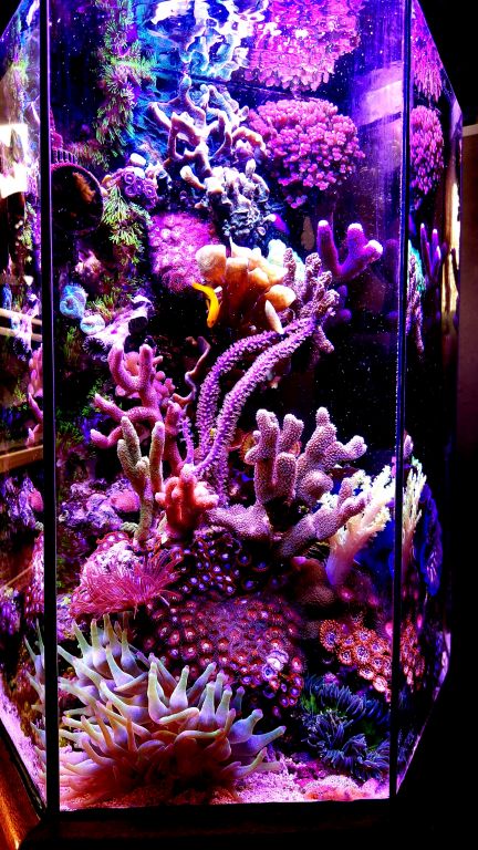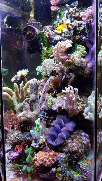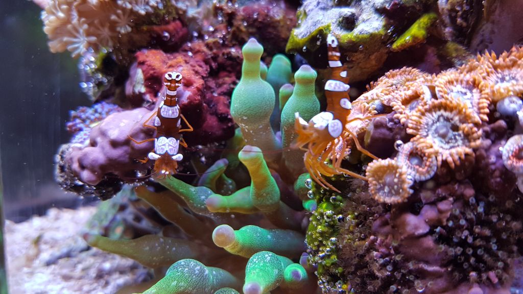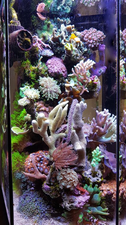 Af levende er der lidt efter lidt tilført diverse LPS, skiver, zoa, blødkoraller og enkelte SPS og en blå Tridacna musling. Derudover er der 5 Sexy shrimps, en dværg bubbletip anemone og en Gul dværg-gobi.