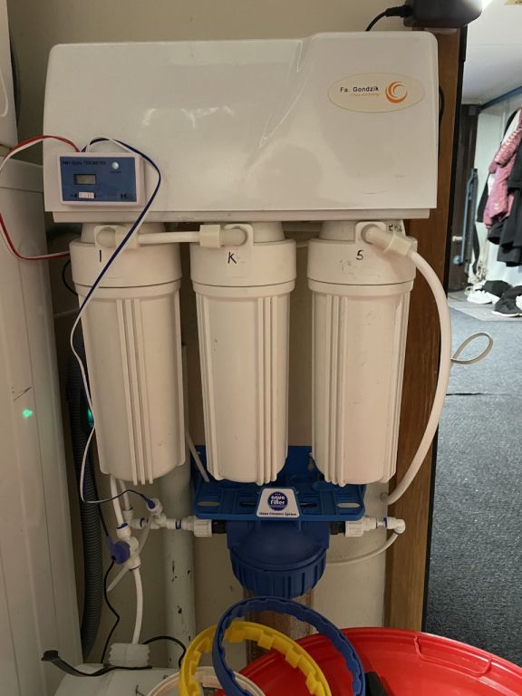 Da jeg kørte daglige vandskift, kørte jeg med Autoaqua, som er en lille computer med optiske sensorer til at styre aftapning og påfyldning samt tilførsel af osmosevand ved løbende fordampning. Den virker perfekt, og var det bedste, som jeg havde købt til akvariet i lang tid. Har sidenhen tilkøbt Autoaqua med magnetventil og optisksensor til at lukke for osmosevandet. Jeg glemte det altid, når jeg lavede osmosevand i en 60 liters balje, så lortet løb altid over og ud i kloarken i flere timer. Det sker ikke mere. Nu slukker den bare, når vandstanden når sensoren. Begge produkter kan varmt anbefales.