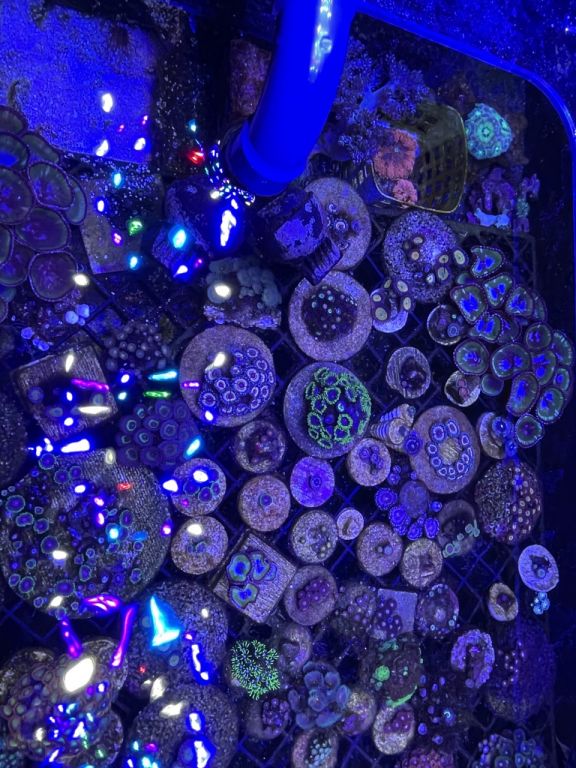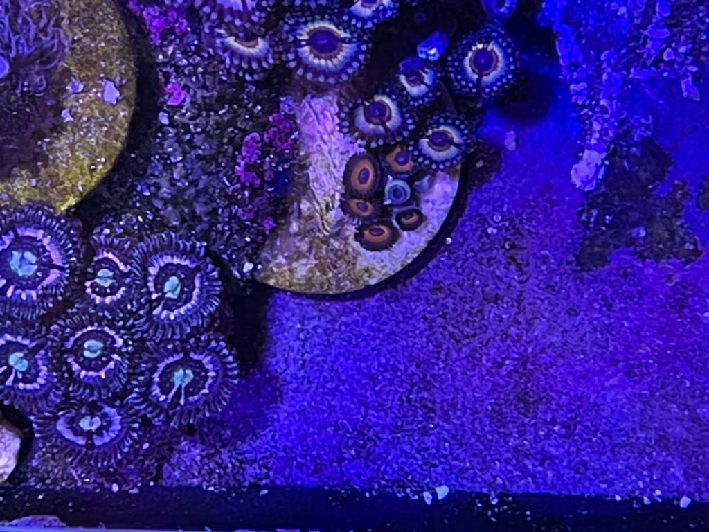 AI Prime på display og Evergro på Zoa-akvariet. AI Prime fungerer fint til mit behov, oveni købet selvom jeg har topglas på for at minimere vandfordampning. Dog bemærk en ting og lyt til et godt råd: skru ned for UV-lyset på dem, da plastiklinsen ellers smelter ganske enkelt over tid ligeud for den ene diode. Plastikken nedbrydes af en eller anden årsag. Tror jeg kørte dem på 80-100%, indtil jeg opdagede problemet. Evergro-lampe over Zoa-akvariet virker super fint.