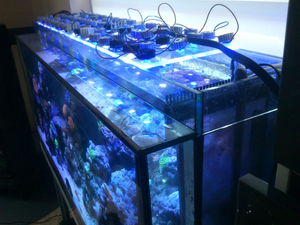 AI Prime på display og Evergro på Zoa-akvariet. AI Prime fungerer fint til mit behov, oveni købet selvom jeg har topglas på for at minimere vandfordampning. Dog bemærk en ting og lyt til et godt råd: skru ned for UV-lyset på dem, da plastiklinsen ellers smelter ganske enkelt over tid ligeud for den ene diode. Plastikken nedbrydes af en eller anden årsag. Tror jeg kørte dem på 80-100%, indtil jeg opdagede problemet. Evergro-lampe over Zoa-akvariet virker super fint.