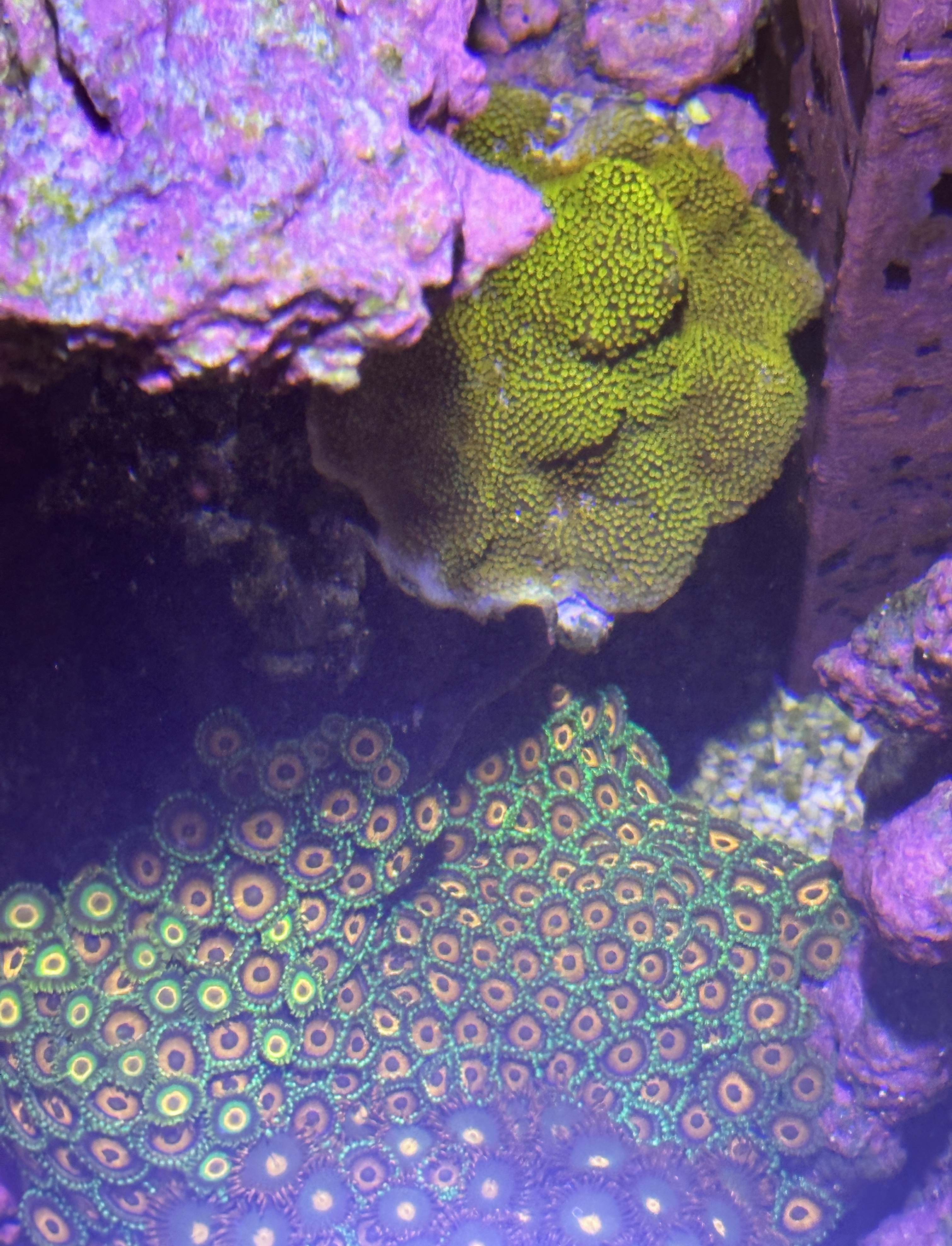 Jeg har fået en del nye koraller, som jeg gerne vil dele med jer. Endelig har jeg også formået at holde liv i et par acropora. Jeg beklager, at farverne ikke er så kraftige (og nogle mangler helt), men jeg var nødt til at skrue helt op for det hvide lys og bruge et filter for at fjerne det blå fra billederne.