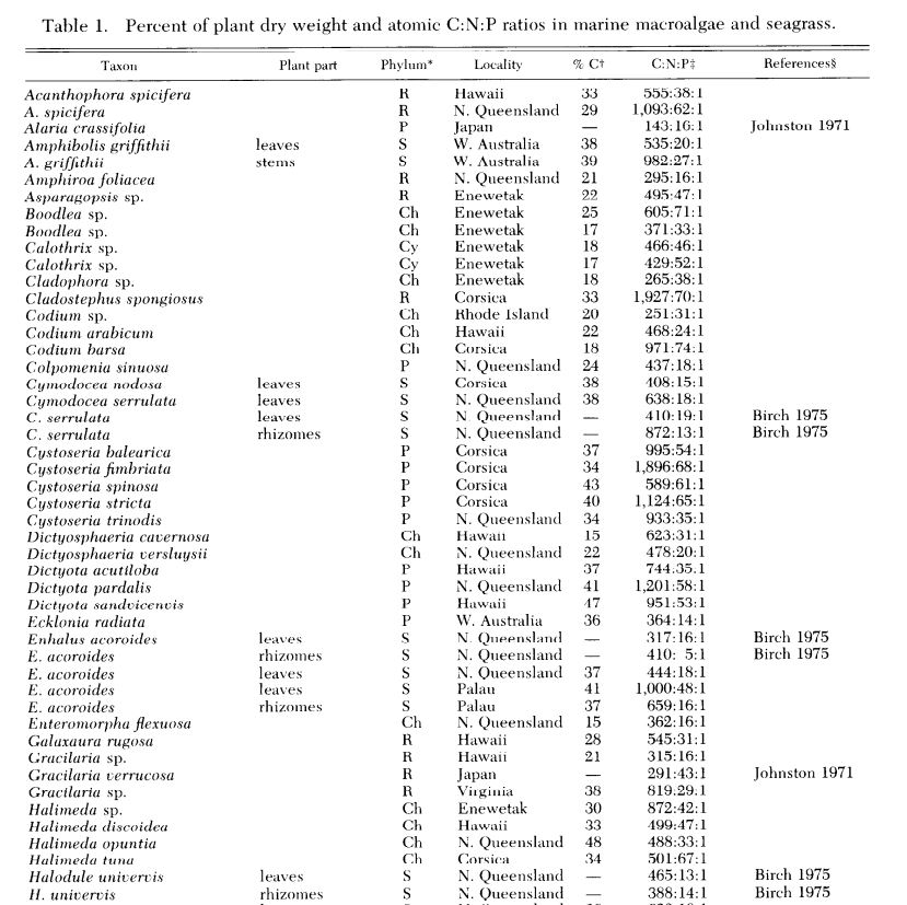 For det første, Redfield ratio er relevant. Men kun hvis man snakker om plankton i havoverfladen.
