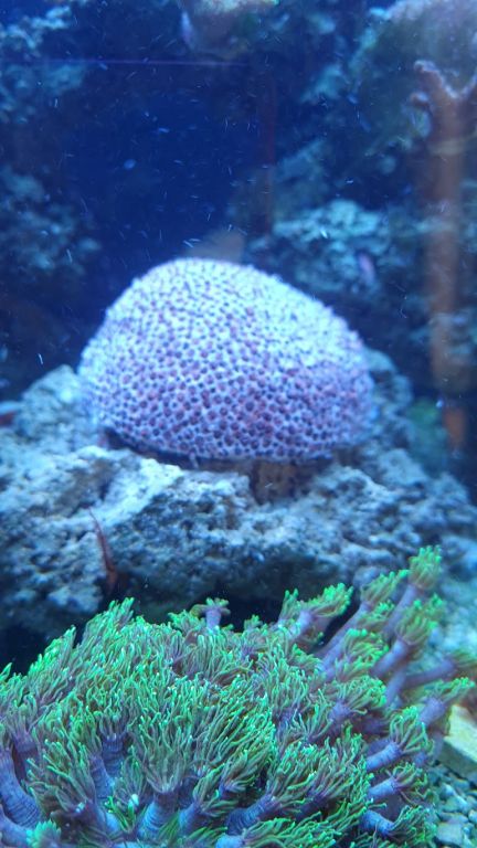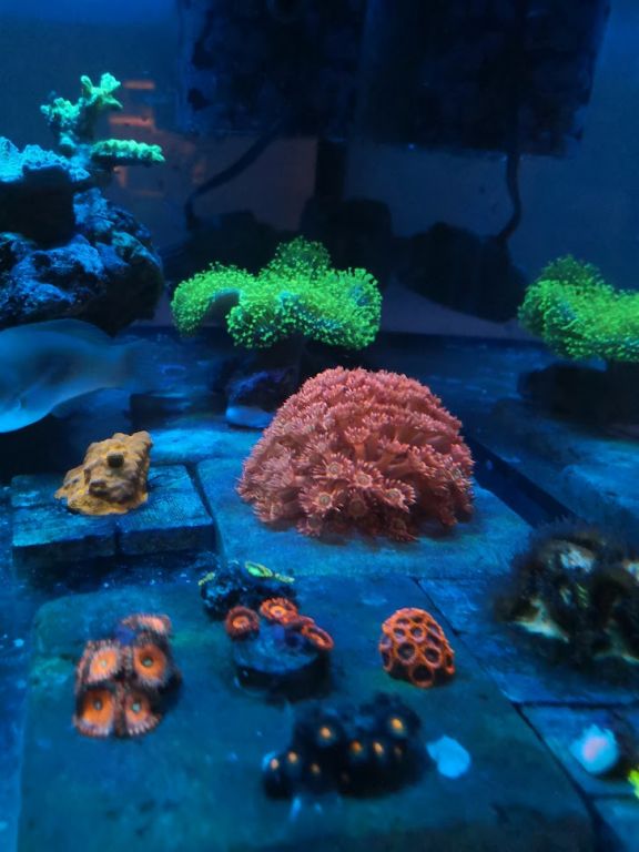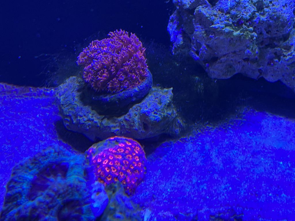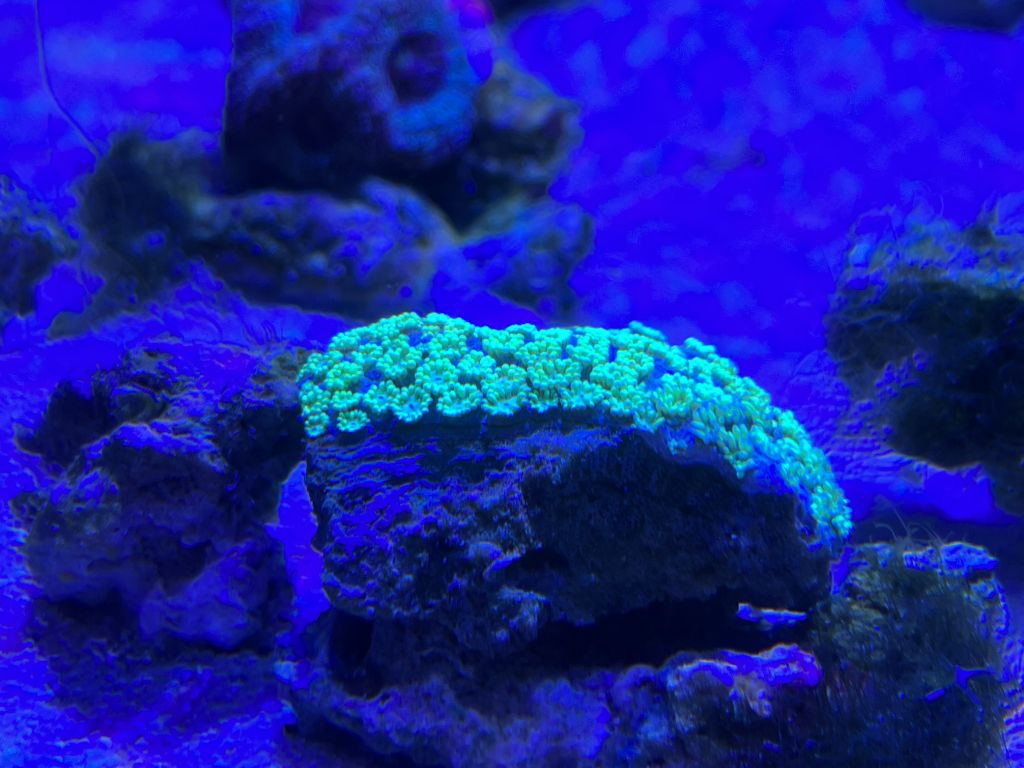 Kh op på 8 til at øge væksten og sikre der er nok og PO4 op på 0.1 mindst og low key carbon dosering med kvalitetsprodukt til at fodre gonioporaen. Sikre dosering af sporstoffer, enten med vandskifte af god kaliber eller ekstra dosering. :)