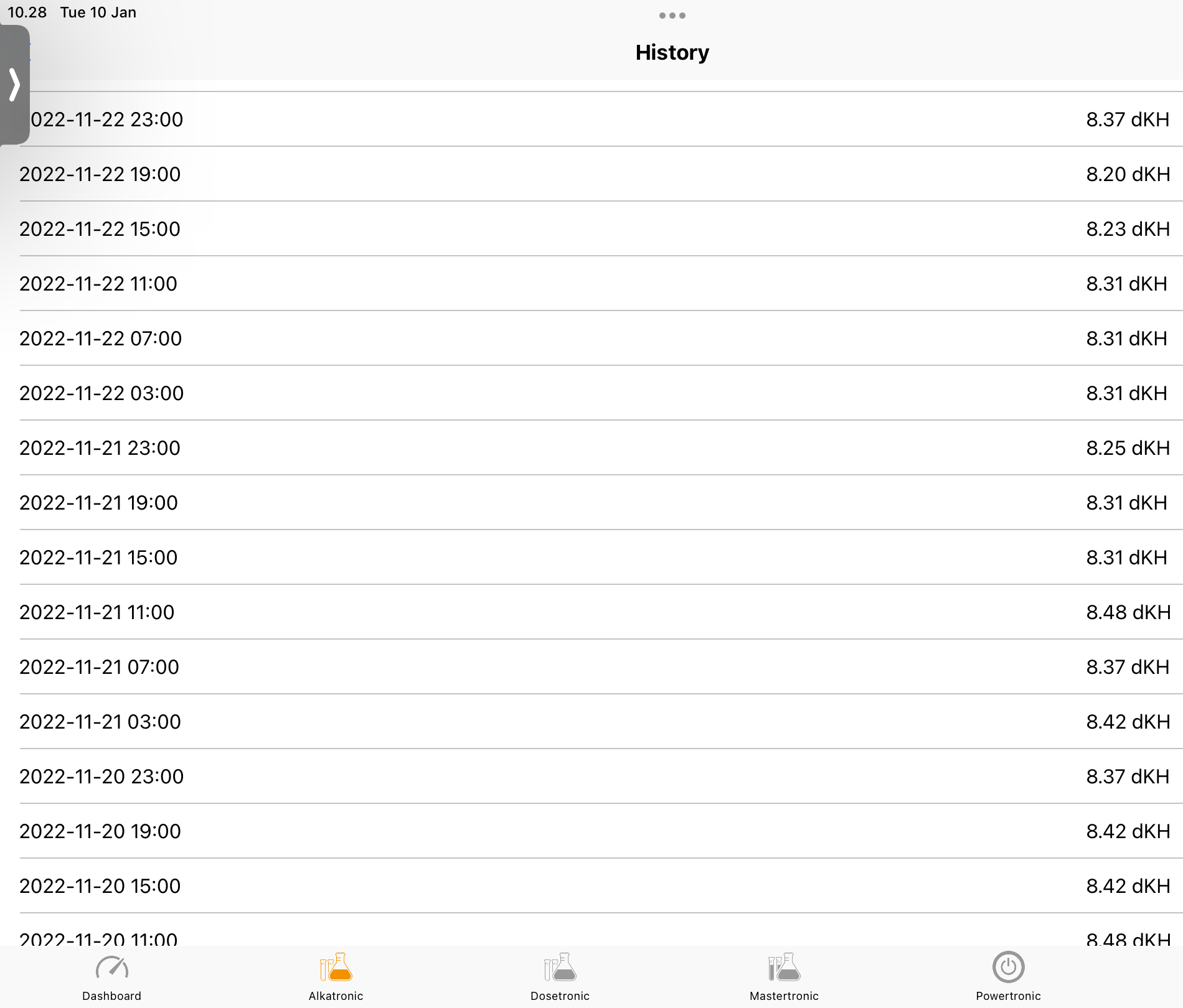 Er osse derfor jeg starter meget langsomt. Har en apex pH probe på til at holde øje med pH. Overvejer at koble doseringspumpe på apex så den kam slukke for kalkwasser hvis pH skulle blive for høj. Din pH er ret stabil ser det ud til.