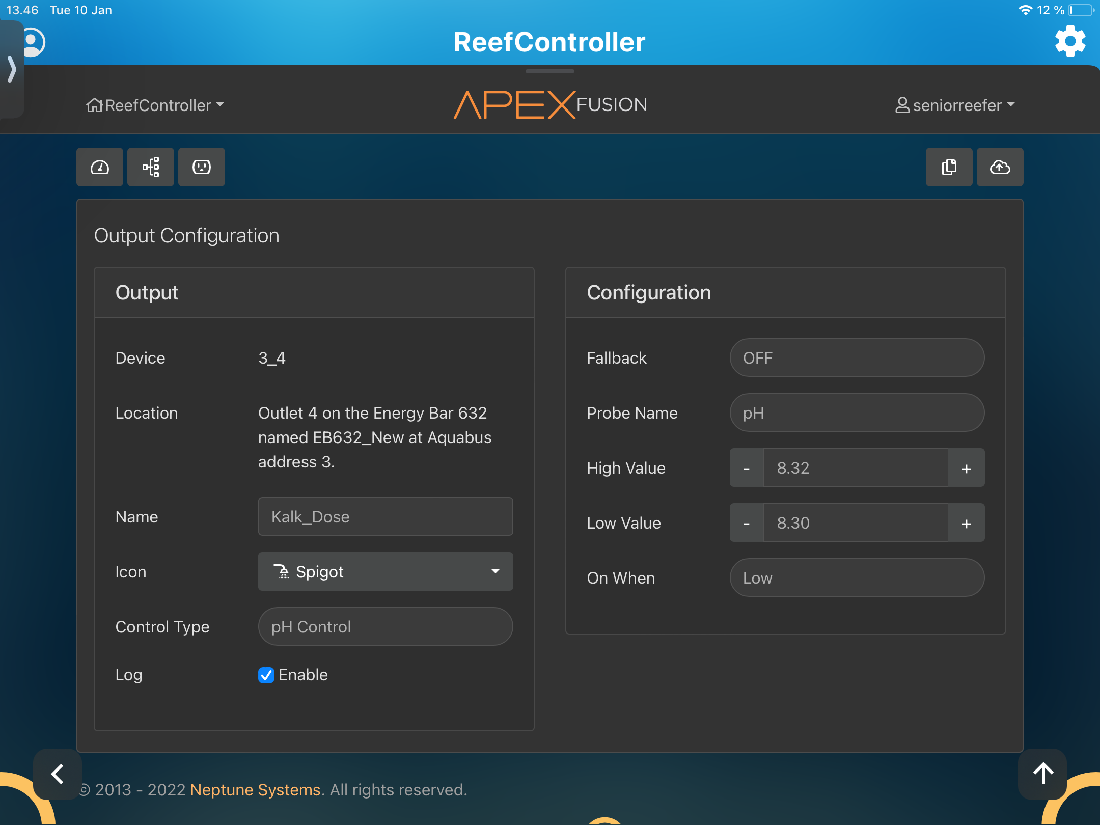 Jeg begynder på kalkwasser dosering om ikke så længe og vil lade min apex, ph probe styrre doseringspumpen i form af følgende kode: