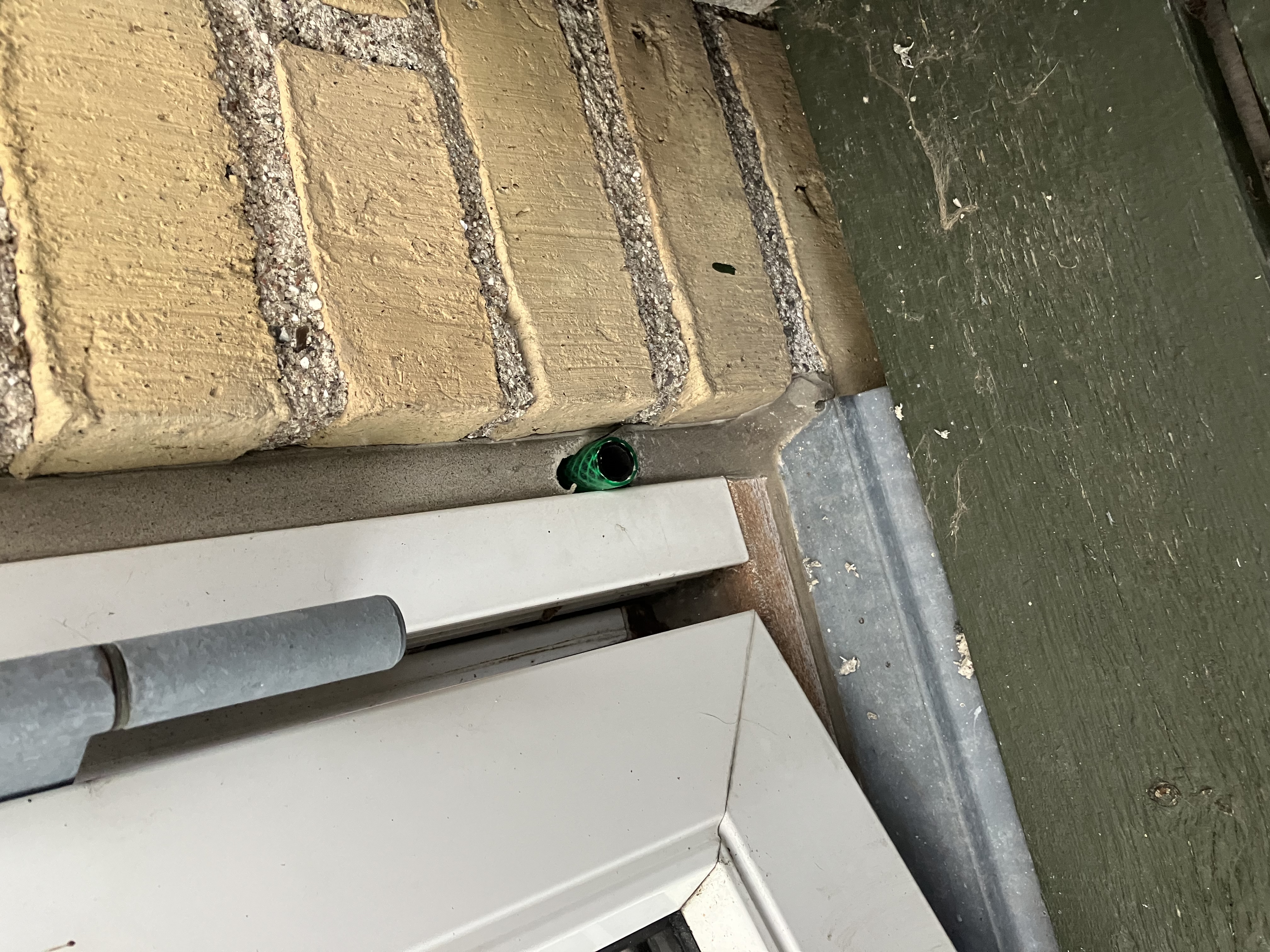 Jeg skærer nok slangen af så den flugter karmen og finder en lille rist til at dække hullet- men ikke for finmasket, da den jo ikke skal begrænse luft tilførslen