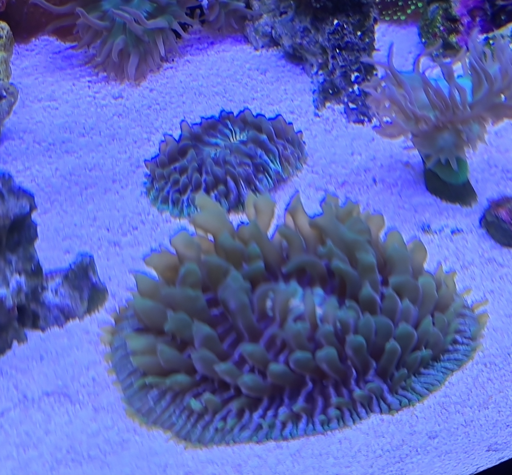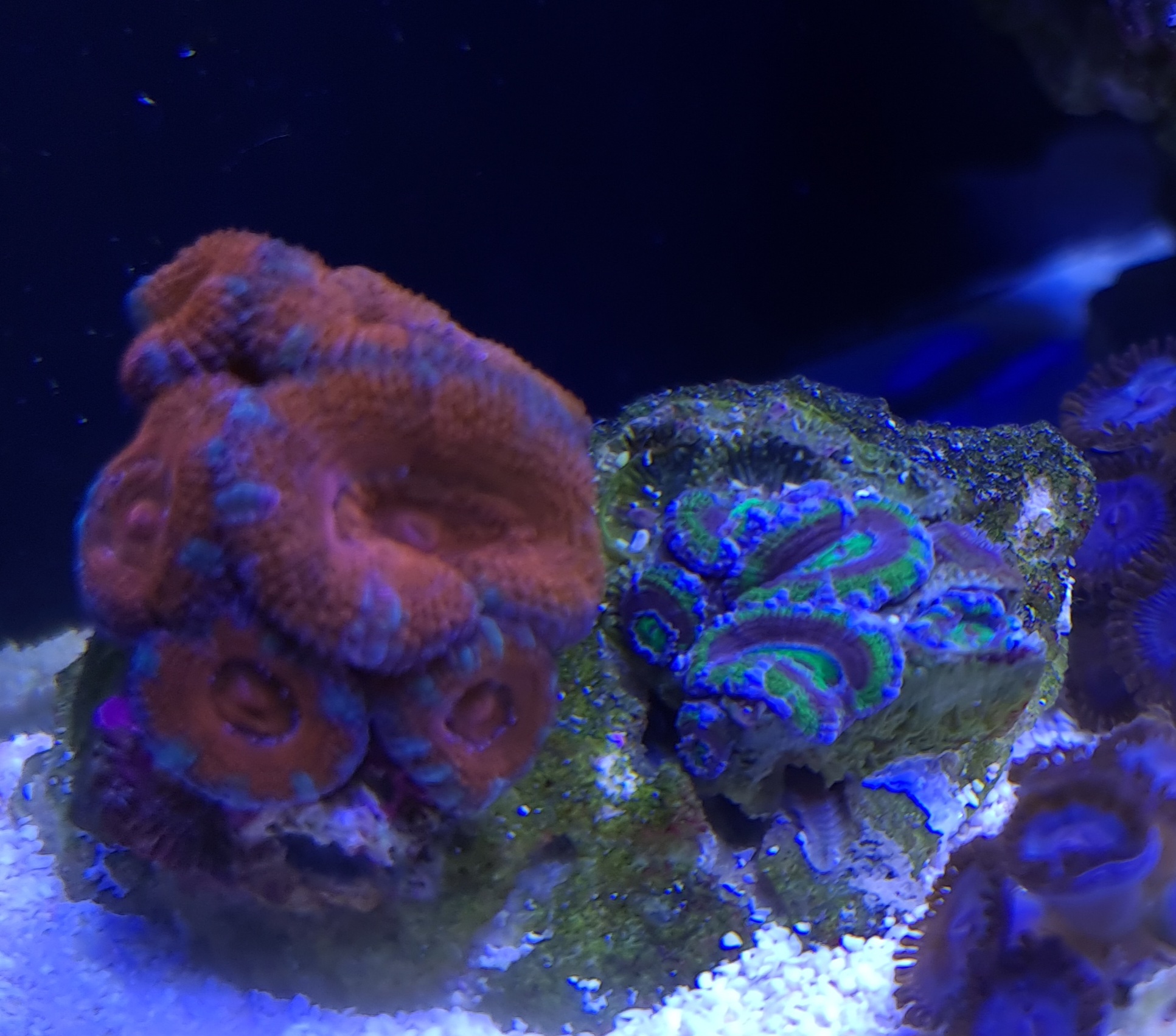 Jeg syntes at Acanthastrea er super flotte og det er lidt sjovt at de dem spise, desværre ser det ud til at den blå er på retur 😔 mens den røde ser ud til at have det godt. Lidt ærgerligt, jeg tror måske mine rejer har været lidt for hårde ved den😔 men så ved man at rejer og Acan er en dårlig kombi. Men det ser ud til at favia klare det bedre, men tænker at det kommer til at gå langsomt 😅