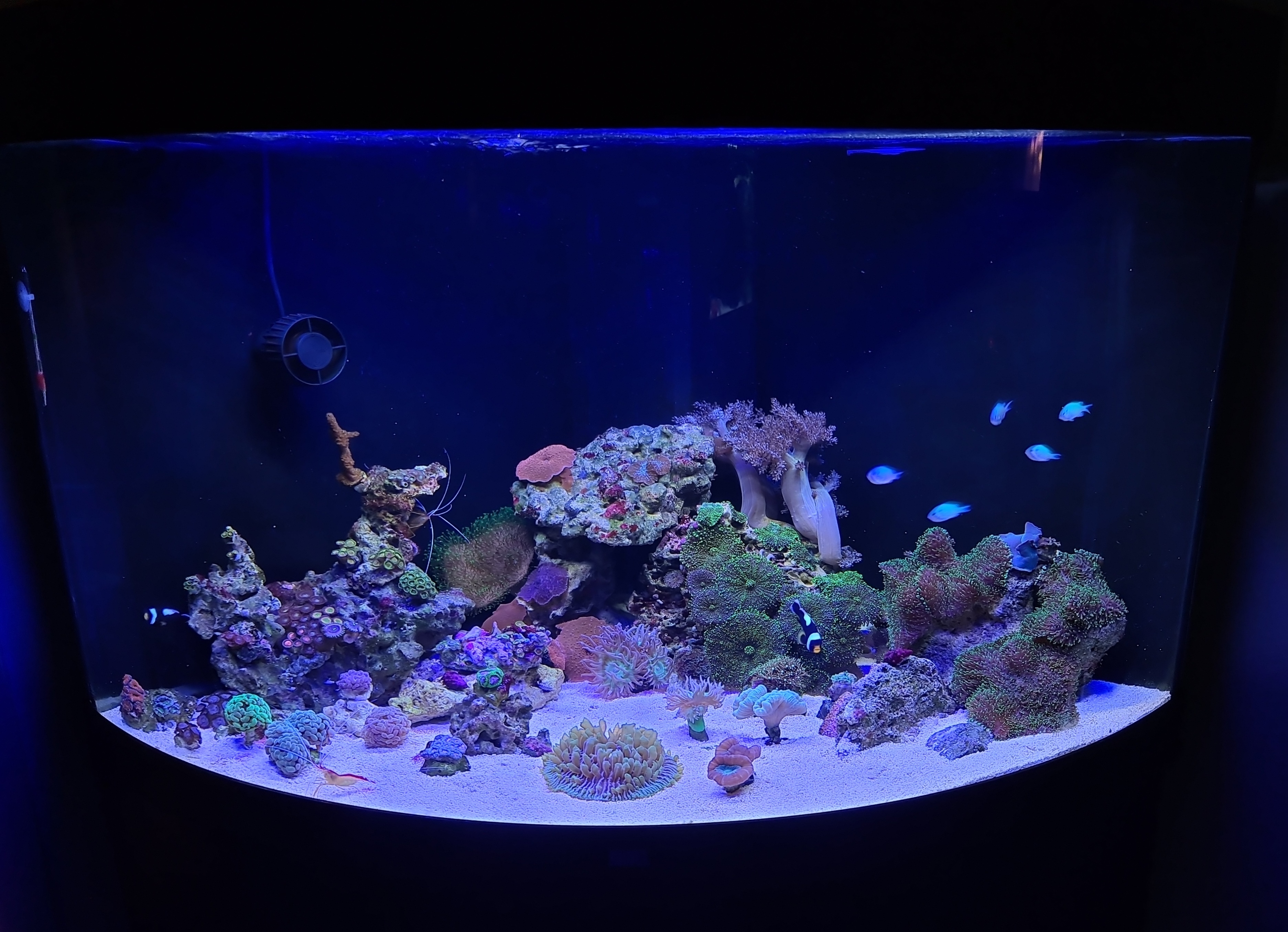 Det er kun fordi en i vores lokale akvarie klub, har et 450L saltvandsakvarie uden skimmer, refugium, avanceret lys, automatisk dosering osv. at jeg tænkte, at det kan jeg jo også gøre bare i mindre skala 😃