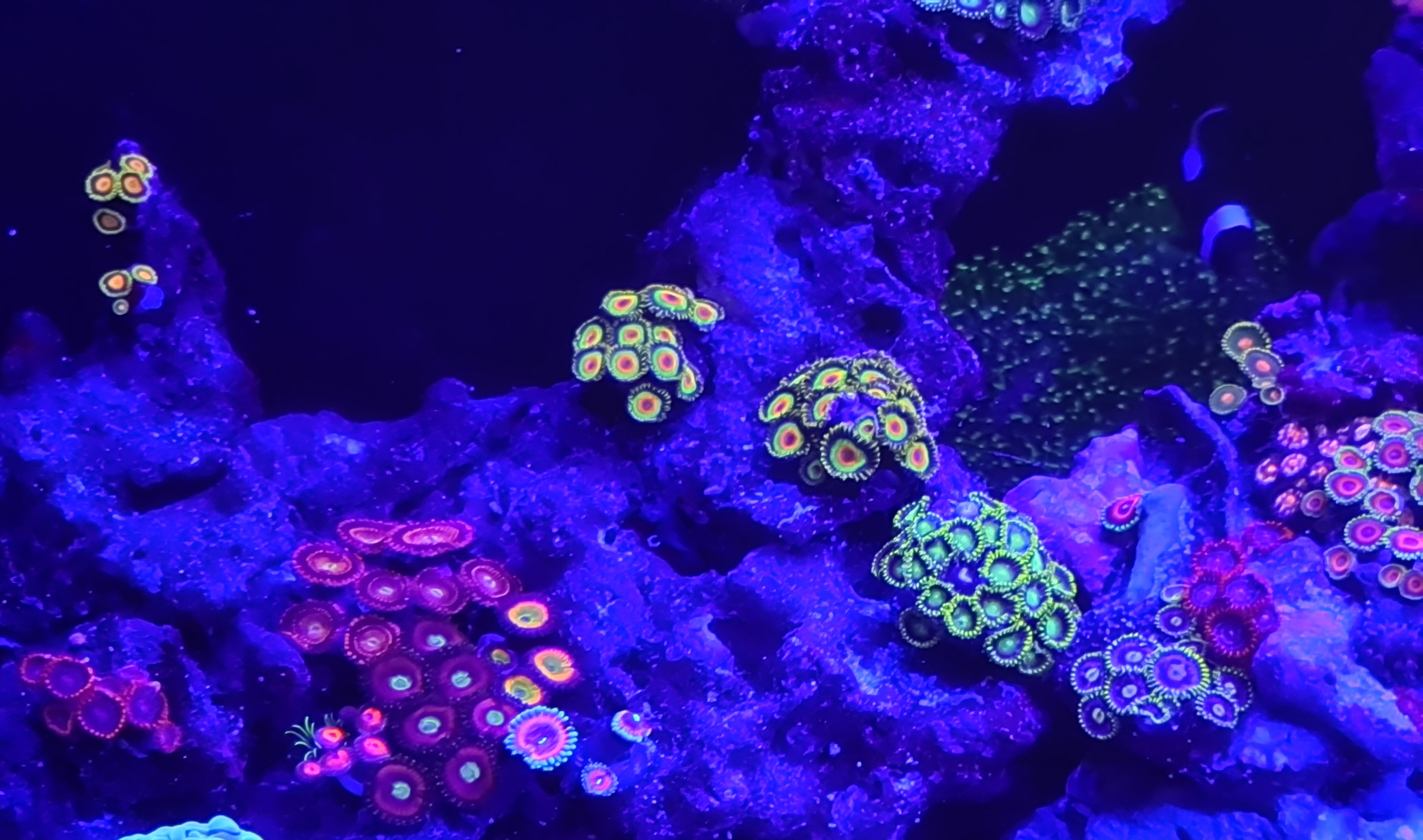 Når kun det actinic lys er på her om aften, så står Zoaerne simpelthen så flot 😍