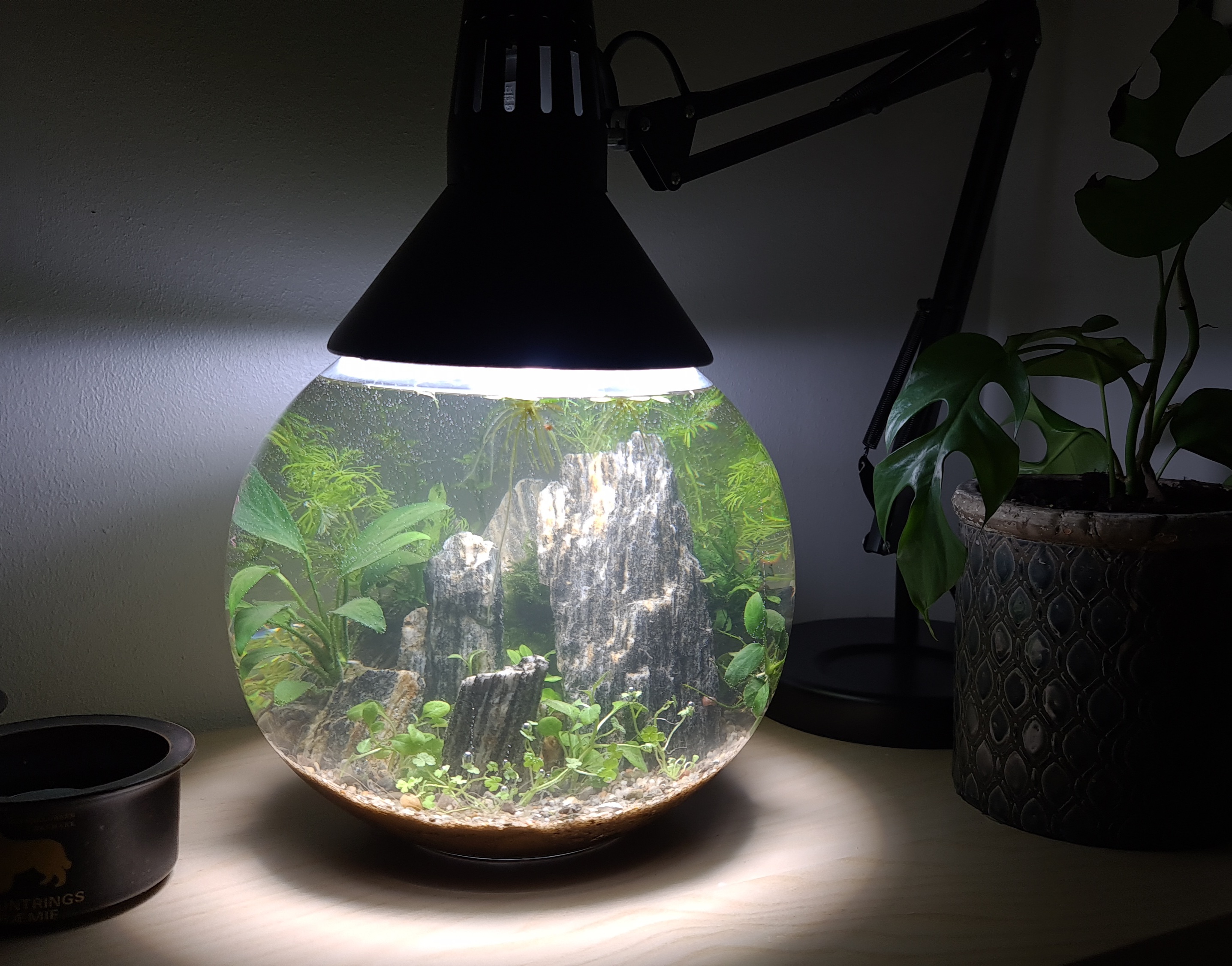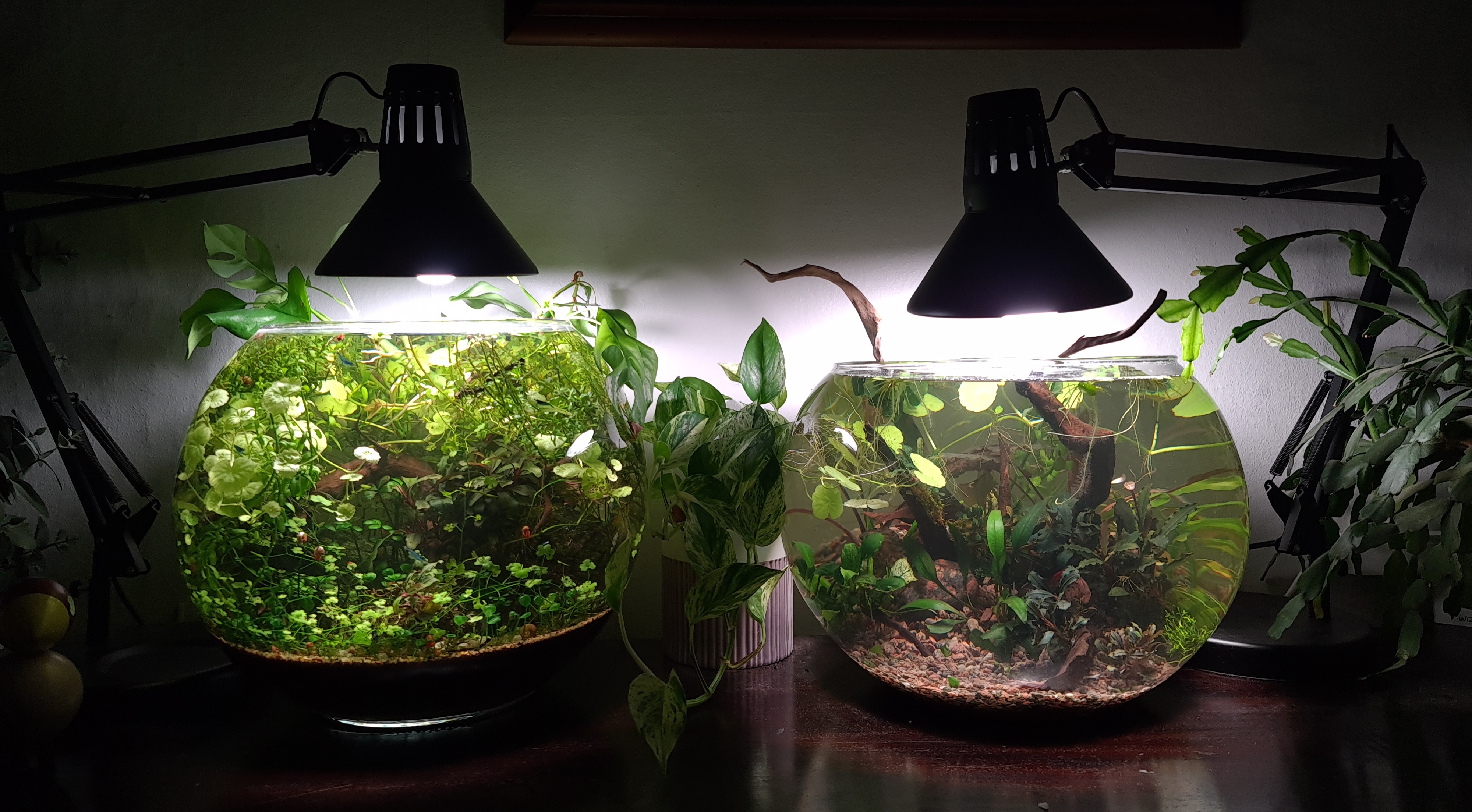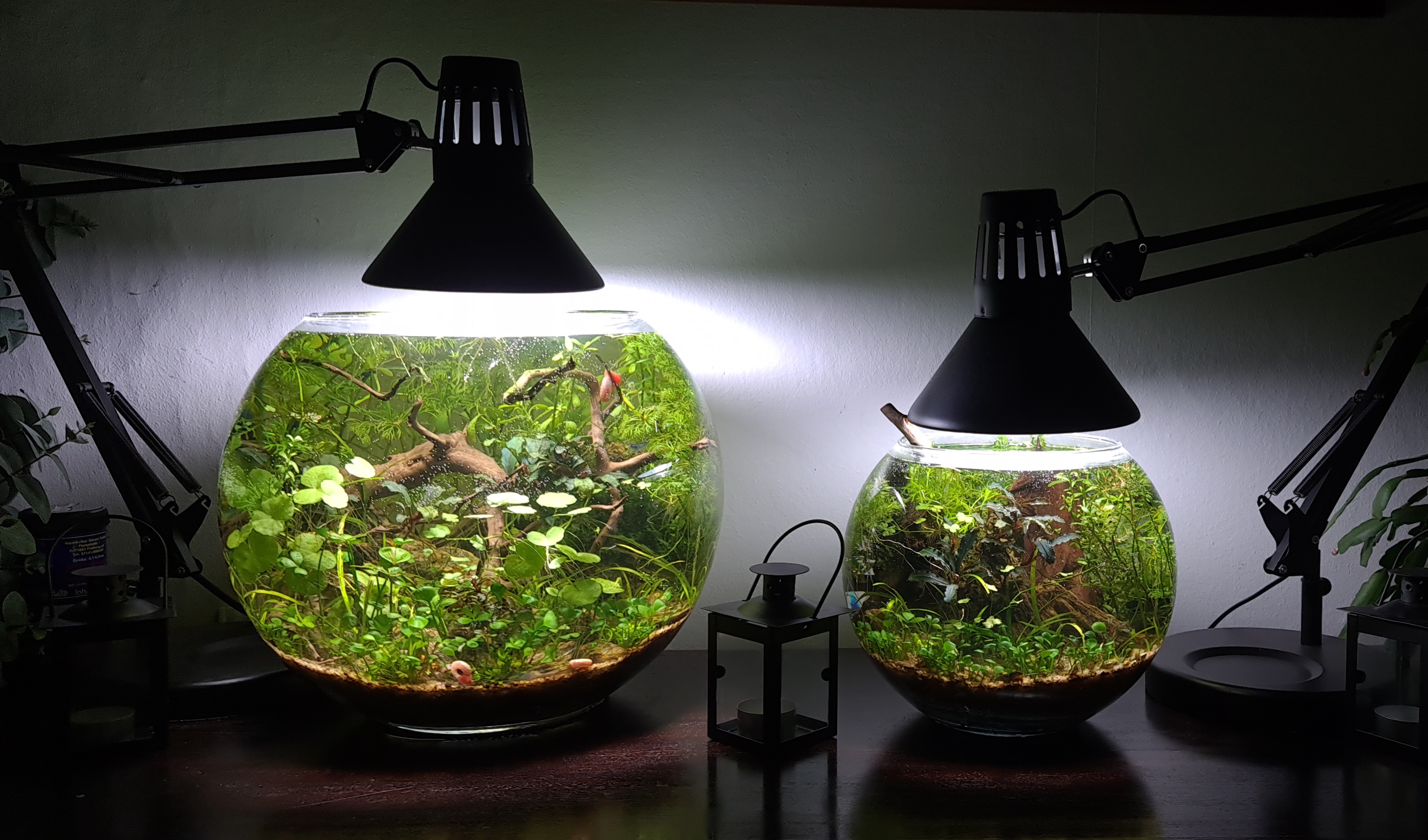 De er uden pumpe og varme og lyset er bare en Philips Wiz pære der er indstillet med dagslys og senere plante lys.