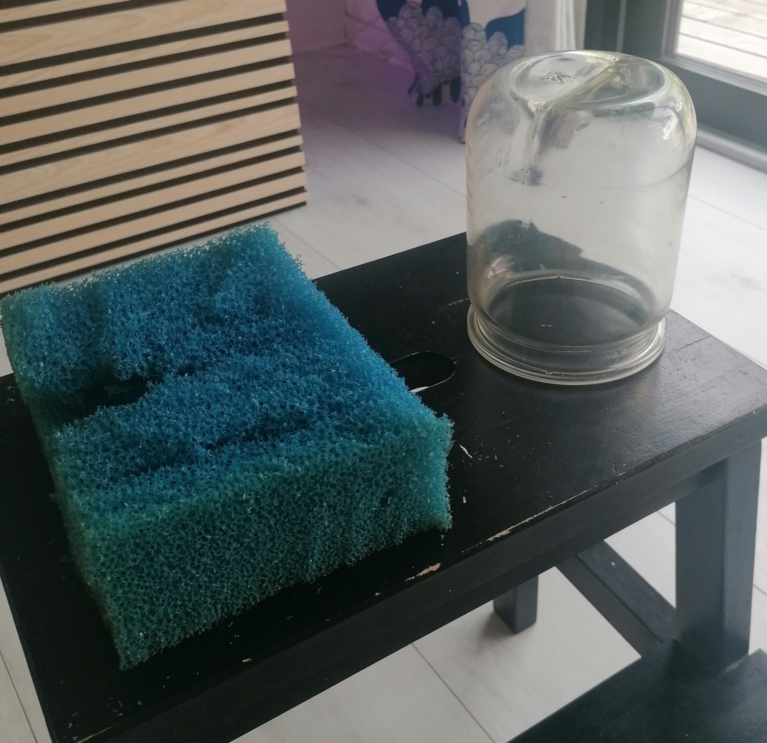 Bor 10 store huller i bunden. 10mm eller ligne . Smid en grov filtersvamp i bunden så den går op over hullerne. Så falder mediet ikke ud og du har dig en co2 skubber for 100kr
