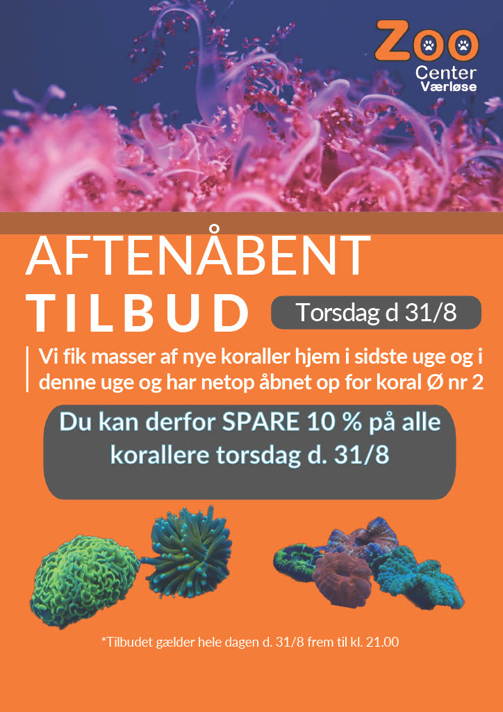 bla. har 10 % rabat på alle koraller samt tilbud på Gramma Loreto til kun kr. 250,- pr. stk.