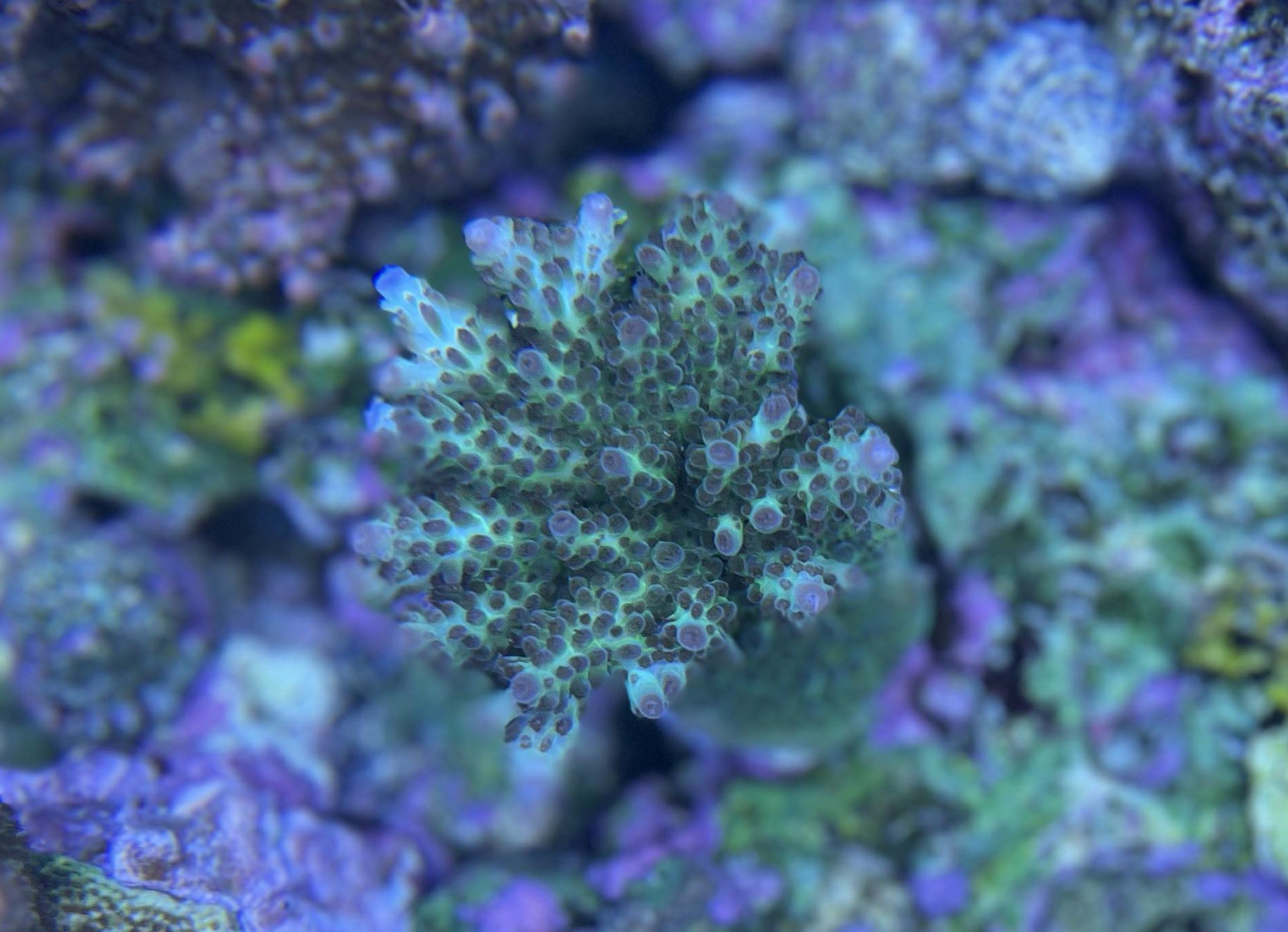 Så lang tid den ikke går fuldstændig amok i mine acroporaer så må den godt bo her og så hvidt jeg ved er de ligeglade med sps?