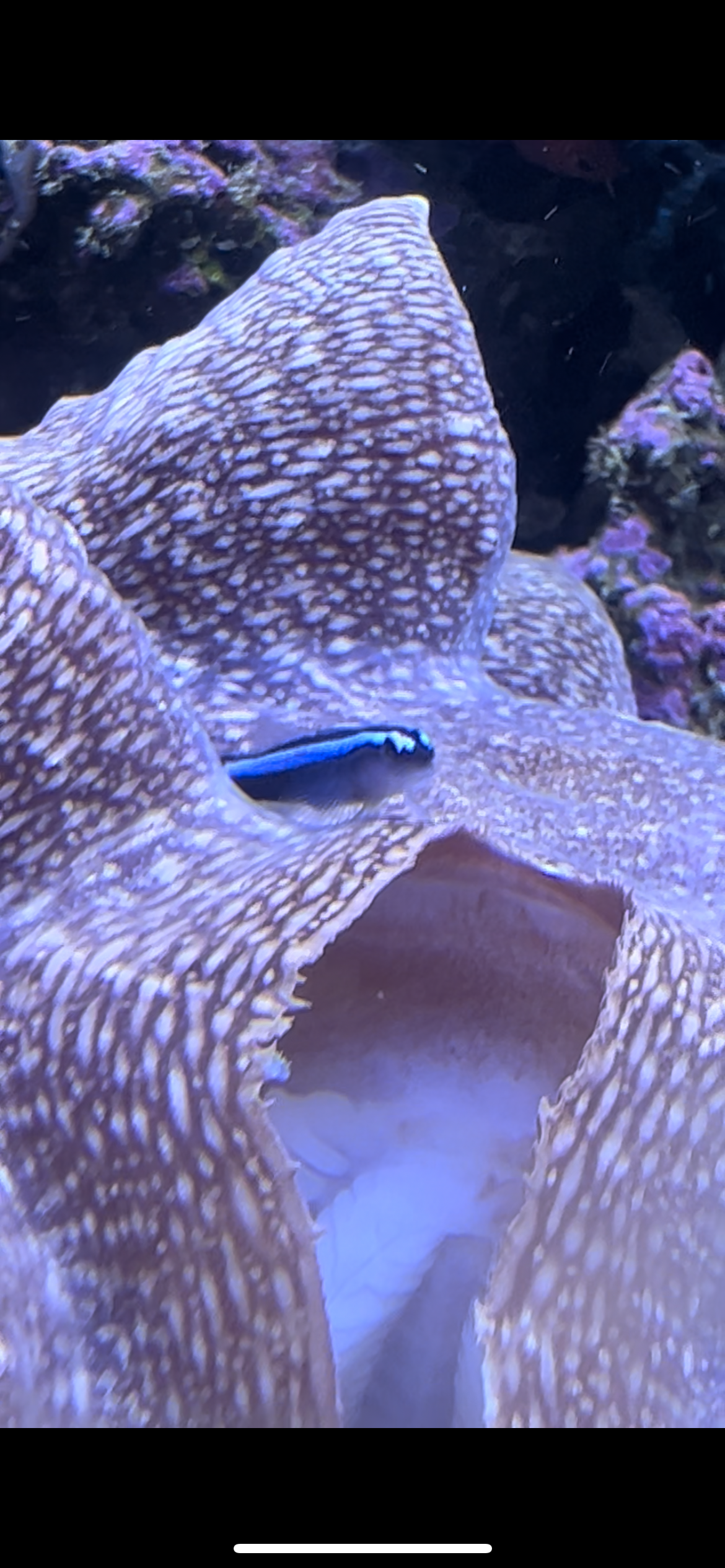 Mine neon gobys synes lige de skal bo i min ene musling de svømmer tit ind i den.. det ligner at det stresser den fordi den konstant står og trækker sig sammen