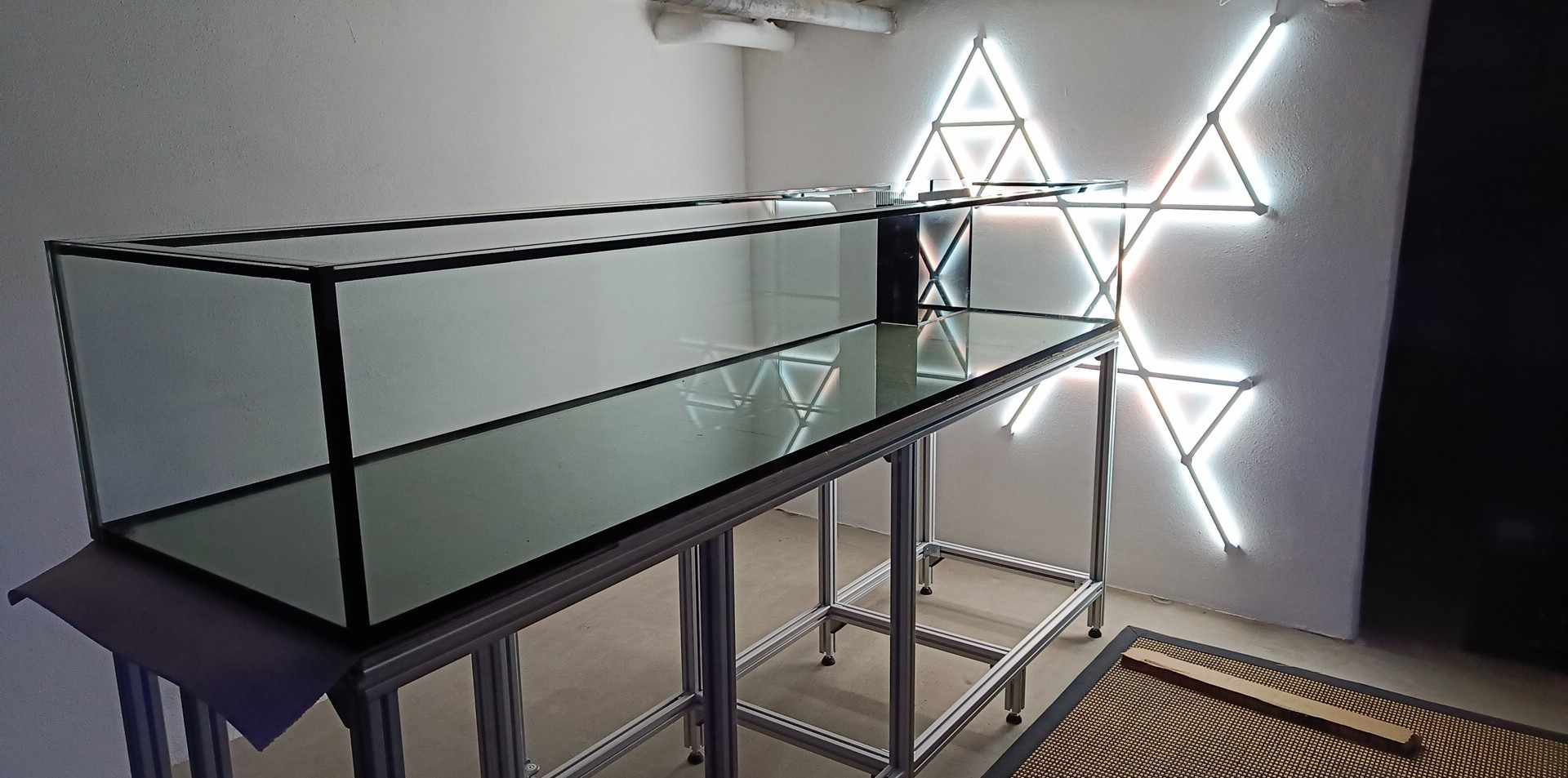 Bagsiden af display akvarie skal gøres mørk så evt kabler mm ikke kan ses igennem akvariet.