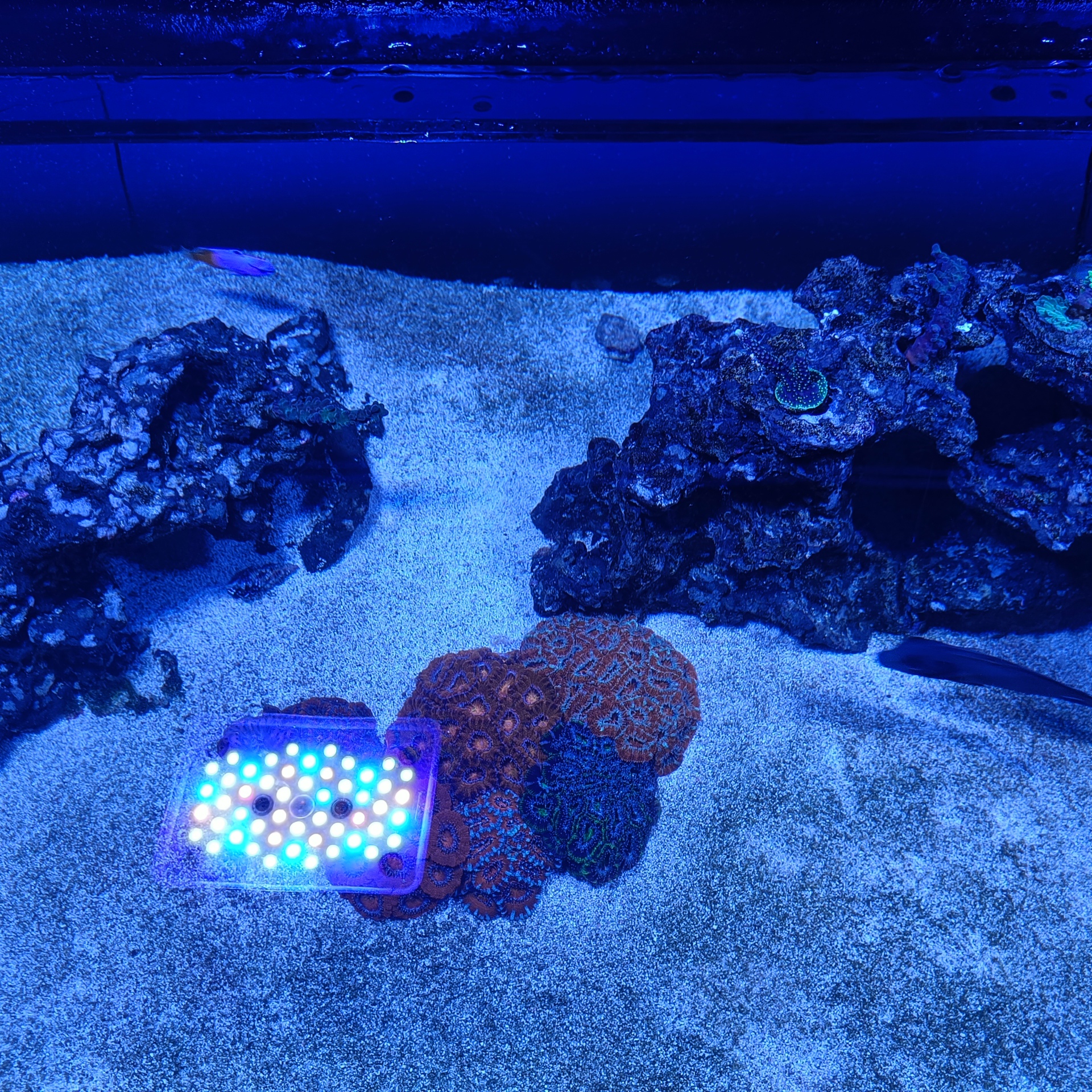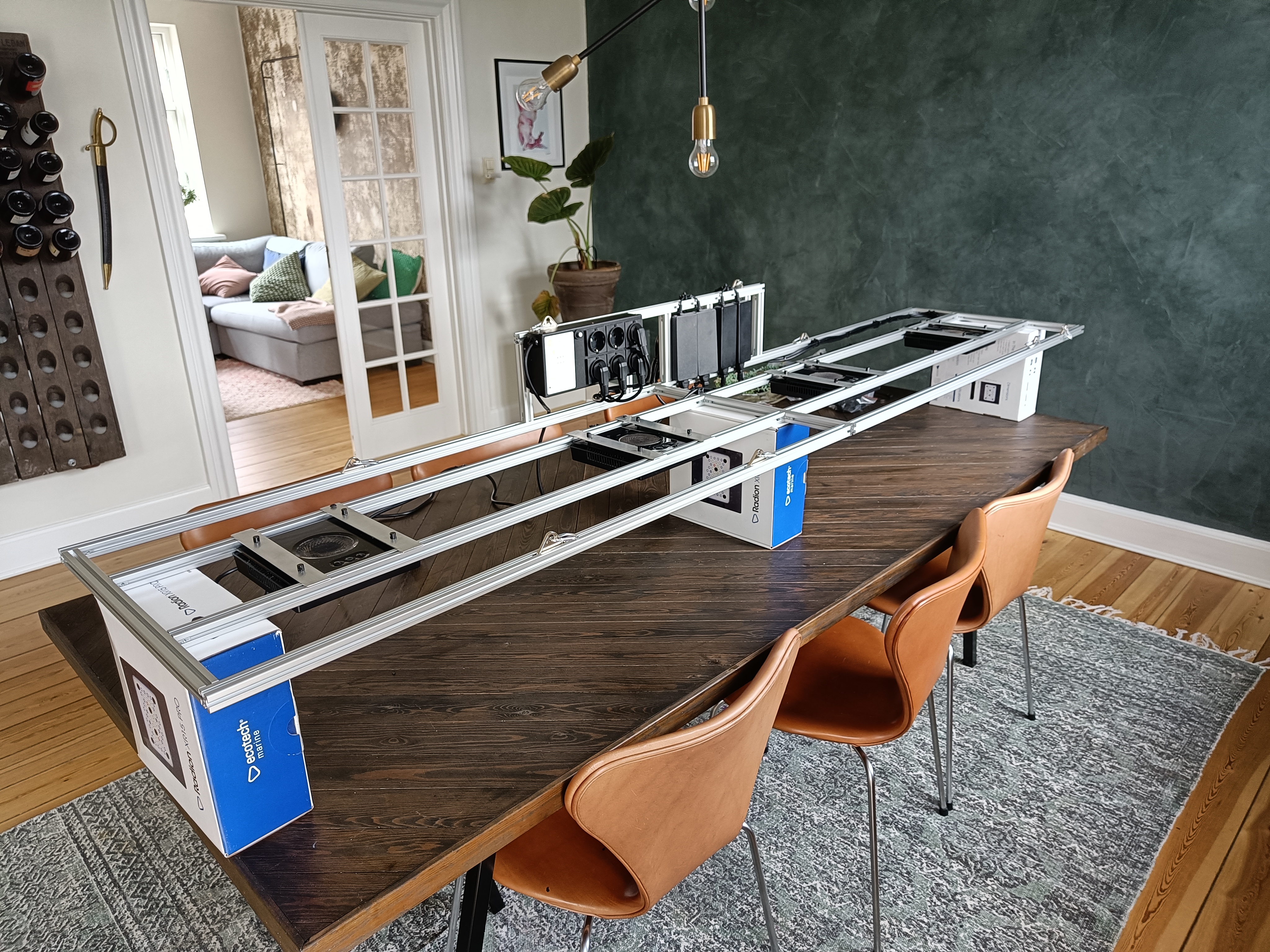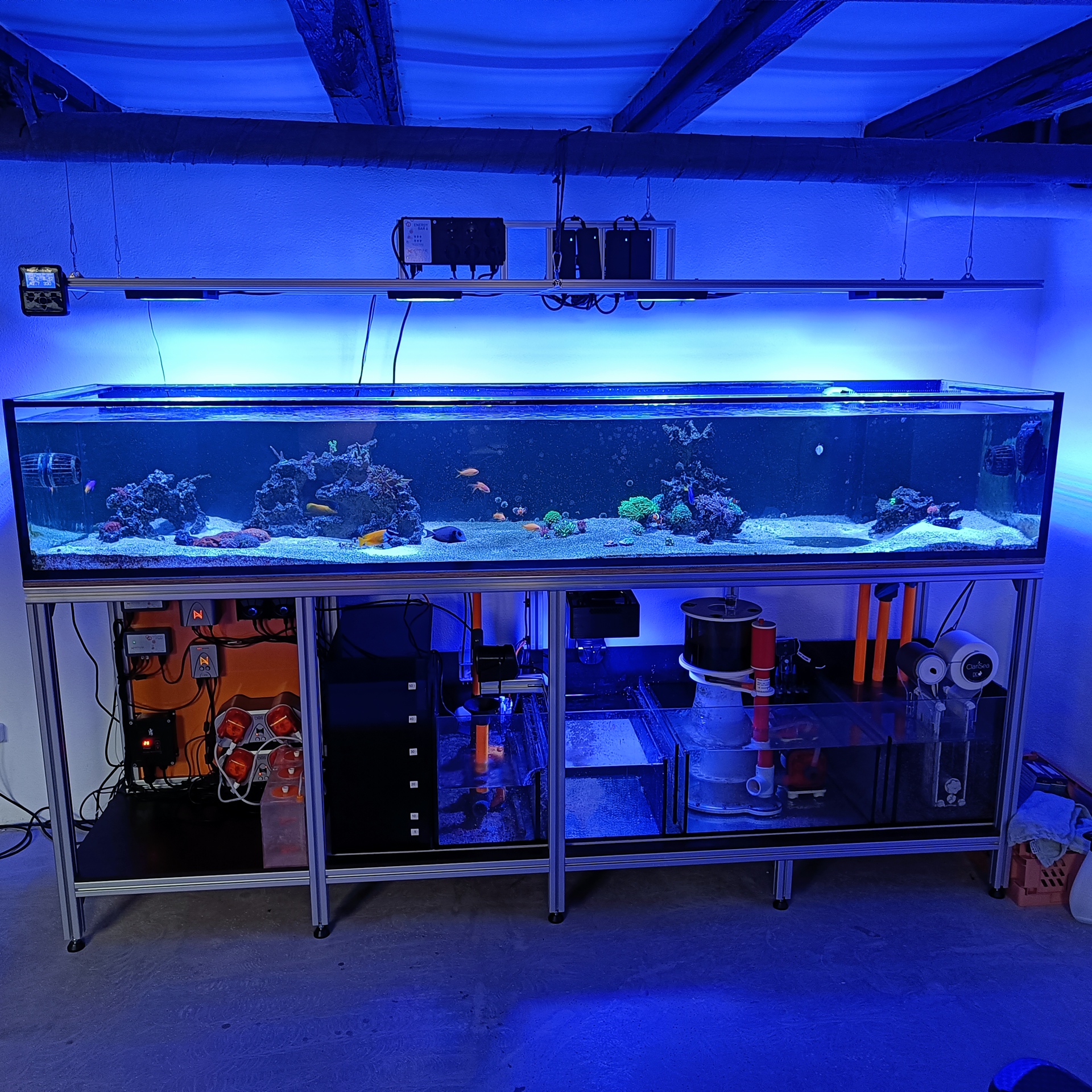 Jeg har indtil videre monteret 4 x Radion XR15 G5 Pro lamper. Om det er nok på sigt må tiden vise. Jeg har 2 x Orphek 120 cm, samt 2 x Orphek 60 cm på lager der hurtigt kan monteres såfremt det ikke er nok.