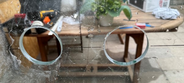 På billedet med det to færdige huller ses en streg lige midt i hullerne – den streg var markering af UNDERKANTEN af hullerne - ÆV 🤬
