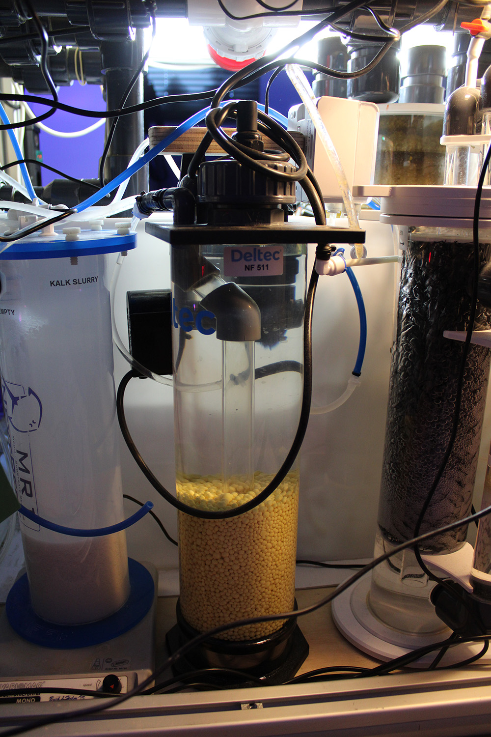 Jeg er nu overgået til en Deltec CR Twin 1500 Reaktor, som kan give op til 350L dagligt, men en udgangs KH på ca. 49 dKh. Jeg kontrollerer den med automatisk KH-test fra Alkatronic og Apex og giver mig rimelig KH-stabilitet.
