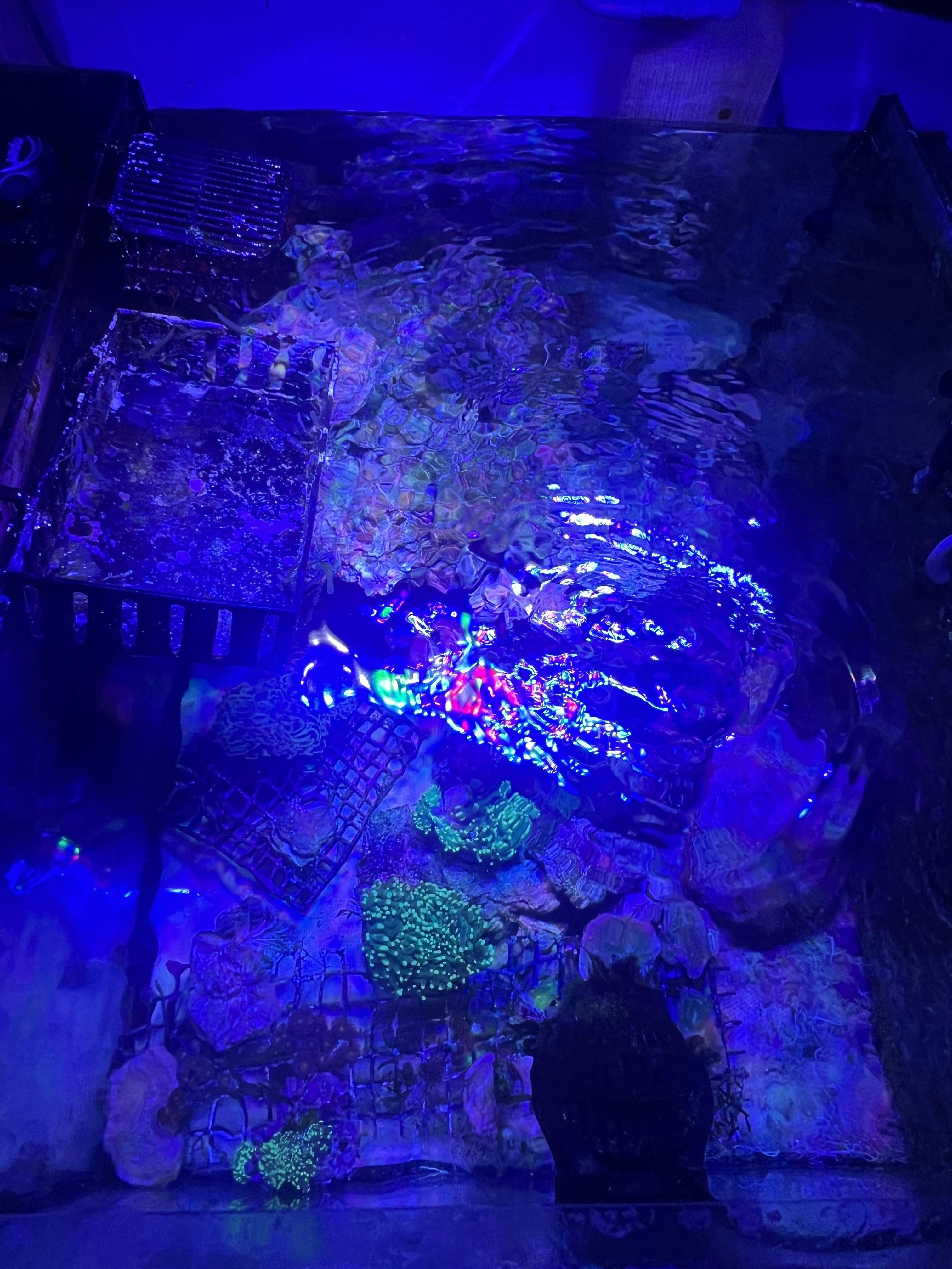 Problemer/udfodringer: Jeg havde i en periode meget svæv i vandet. Jeg bøvlede med det i nogen tid, indtil jeg fik et råd om at lege med cirkulation, så jeg fik placeret pumperne anderledes og skruet lidt op, og det var løsningen på problemet. Udover det har jeg døjet med at finde den rigtige mængde flow for at mine sps og lps koraller kunne trives. Det har været meget svært, synes jeg, men jeg har nogenlunde fundet et niveau, hvor alt er godt. Det har dog kostet et par lps koraller, som er blevet blæst i stykker. Afslutning