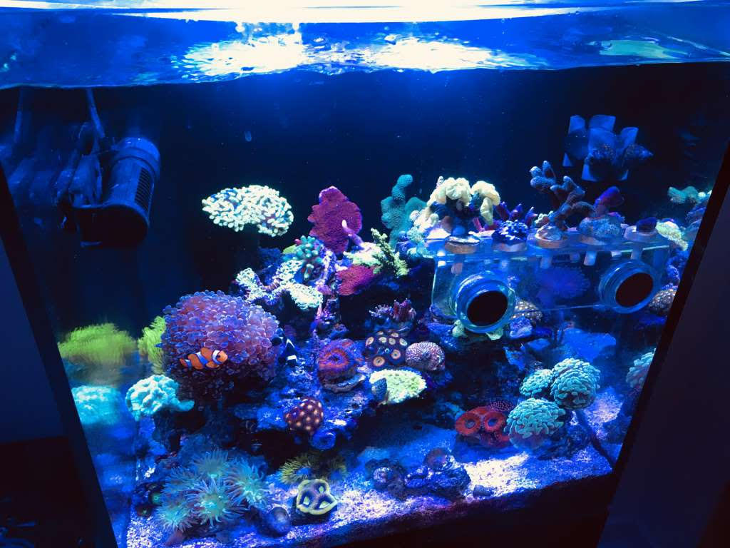 Nu til min saltede historie... Det hele begyndte tilbage i 2015, da min datter insisterede på fisk, men synes ferskvand var lidt for tamt (undskyld til jer, der holder af ferskvand, jeg elsker jer også lidt). Så jeg kastede mig ud i den vanvittigt komplekse verden af saltvand. Efter en del læsning og som passiv tilskuer på saltvandsfora, sprang jeg ud i det. Jeg bestilte en 60L Dennerle-glasboks, som var marine edition (det betød i bund og grund, at der var sand og en overfladskummer med). Men hvad vidste jeg dengang? Jeg var helt grøn! Hurtigt gik det dog op for mig, hvor meget andet udstyr jeg havde brug for. Vigtigheden af det “rigtige” Lys, testsæt, ordet "skummer" dukkede op, levende sten, flow – jeg havde åbenbart ikke sat mig så meget ind i tingene, som jeg troede. Men hey, der var kun én mulighed, og det var at lære det! Så jeg tog på den lærerige rejse, som vi nok alle kender alt for godt.