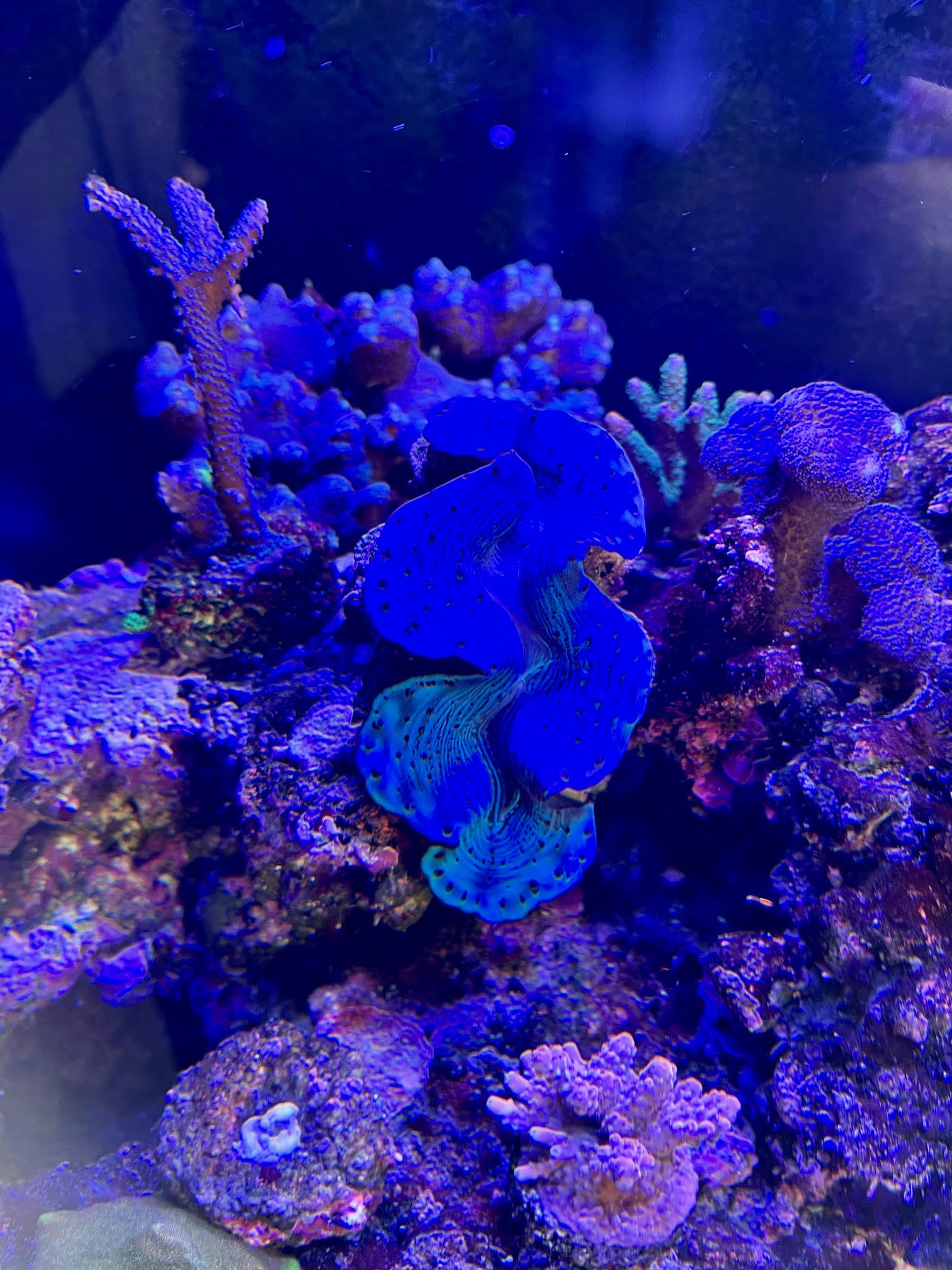 Montipora digi. Metal blå og en forrest fire.