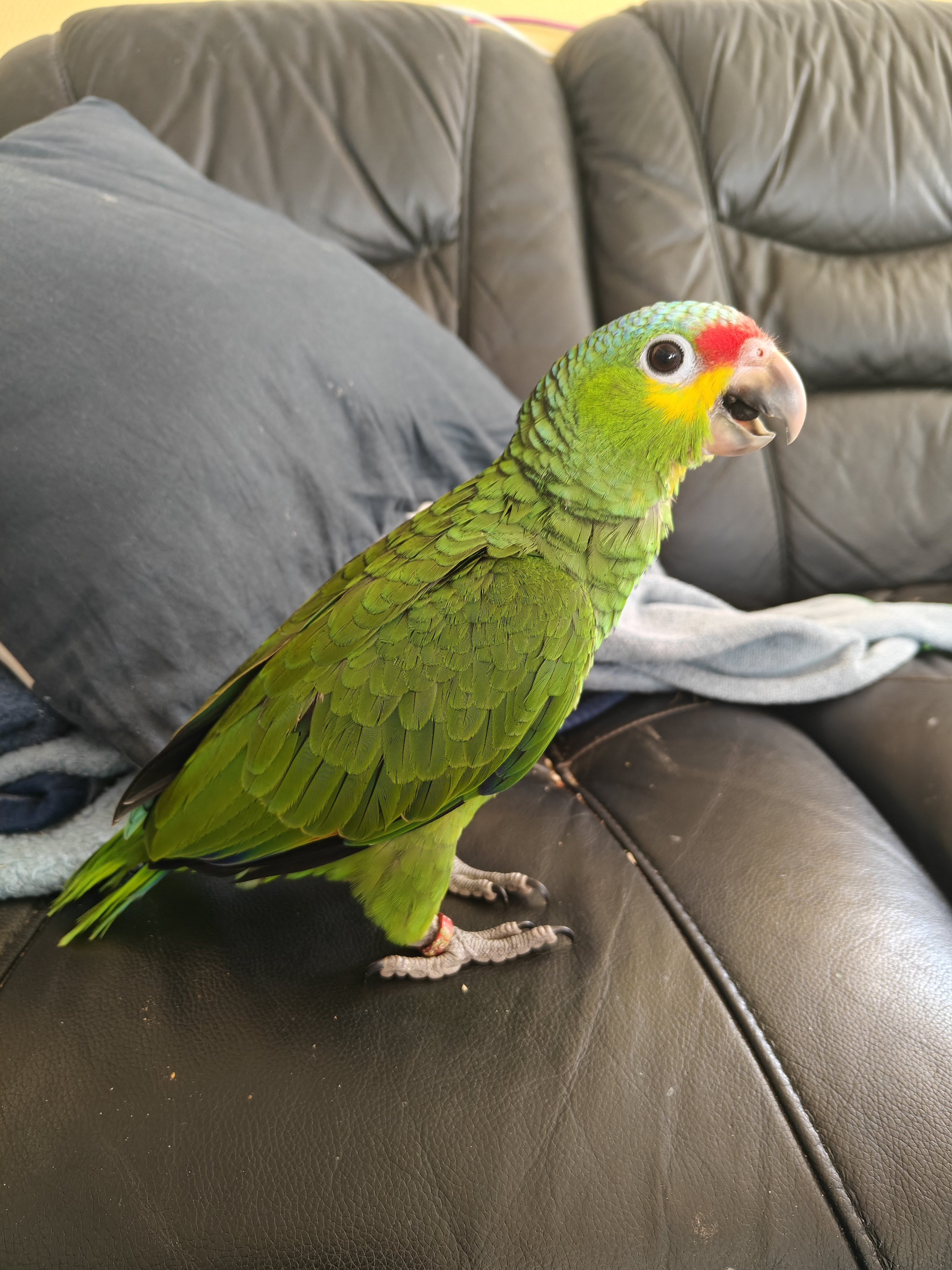 Det er en unge af Gulkindet amazone papegøje, 9 dage gammel.